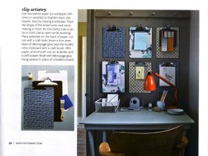 I ran across this idea in Martha Stewart Living. She says to put those piles on clip boards that hang on the wall and get them off your desk! She gives decoupage instructions for covering them with pretty paper. Her site is packed with good ideas!