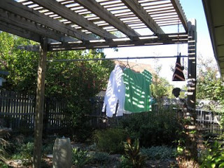 I don’t know about you, but I hang a lot of my clothes to dry. The fabric looks better longer if it’s not in the dryer too often. I hang wet clothes on hangers on a rod in the utility room. When that’s full, I end up hanging clothes in the bathroom(s) on the shower curtain rod(s). I don’t have an outdoor clothesline. Why is that?