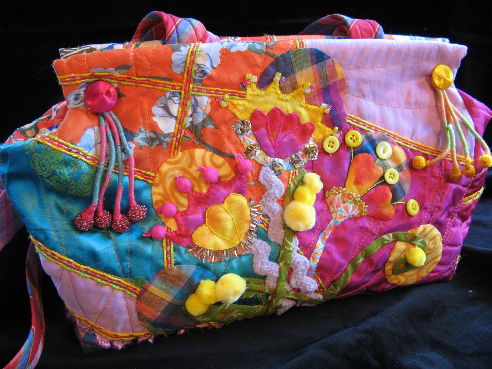 We have just posted the results from the 1st Ever Piece O’ Cake Block Contest on our site showing all of the entries, including the winners. (Oops – there were broken links that caused the images to be invisible. I hope I fixed it. Hit your refresh button if you don’t see them.) Two of the winners are Sarah Crumley who made this amazingly cute purse and Carrie Pippins who made a table topper with a lined prairie point edge!