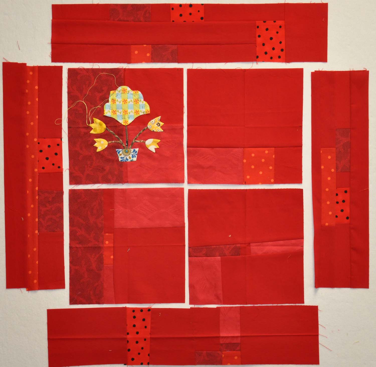 It has been crazy at my house today! But I did promise to share news on the miniature I'm making. Truly, I don't know that this qualifies as "miniature" – it's more like a really small quilt. What you see here are the pieced backgrounds.