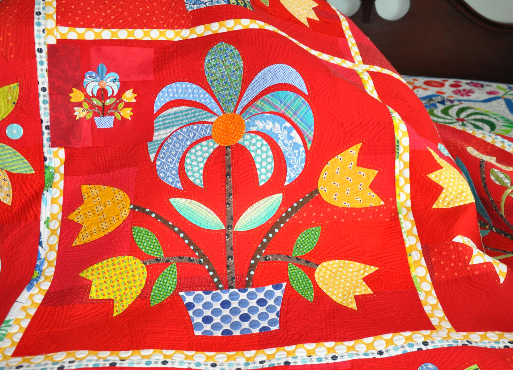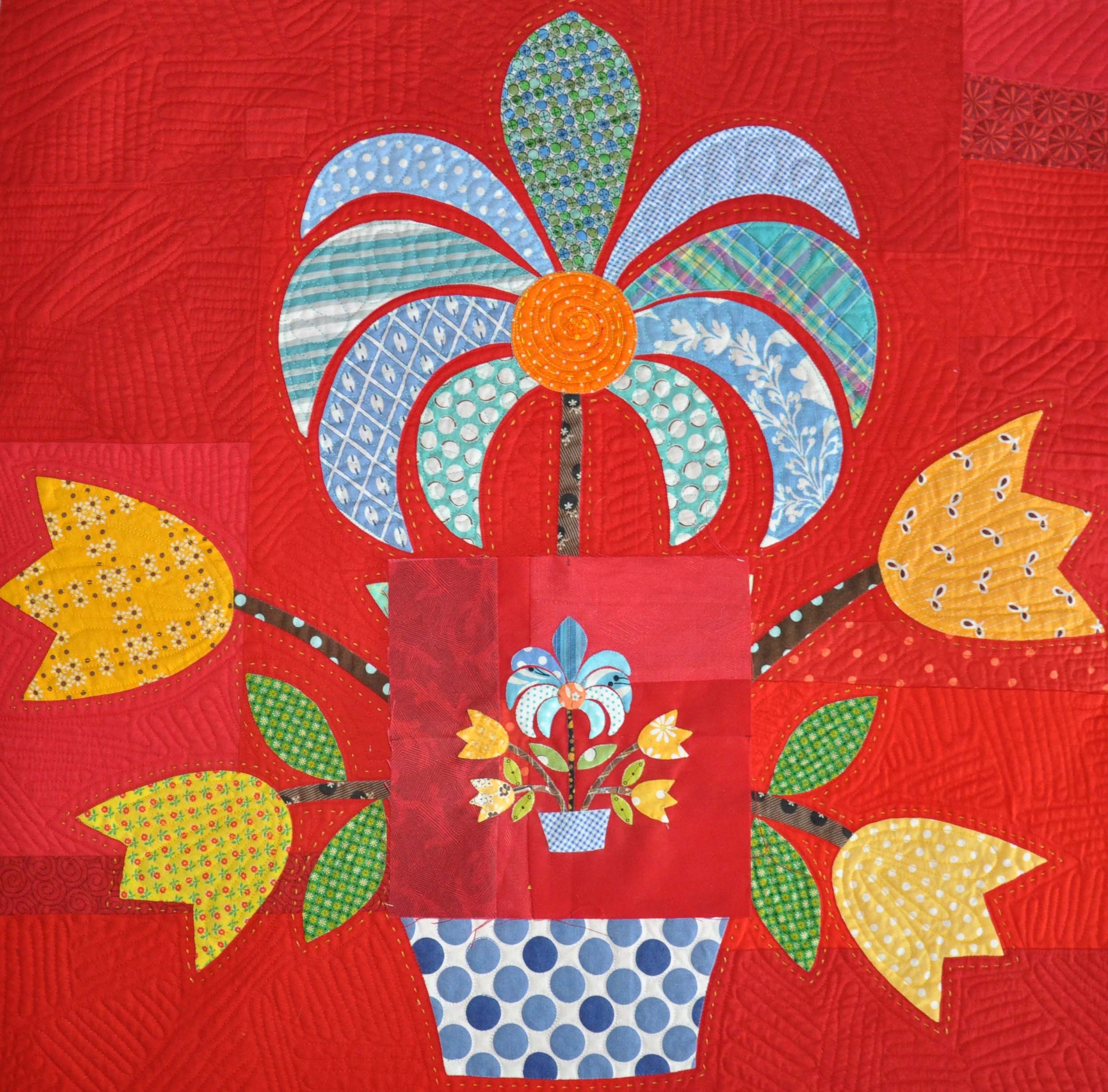 I've often told classes that it takes longer to applique little tiny pieces than it does "normal-sized" pieces. That's true for quilters who are beginning to intermediate appliquers. But I can honestly say that if you know what you're doing, appliqueing these 5" blocks is fast. I'm spending 2-3 nights per block. I know it took me 5-8 nights to sew each of the bigger blocks. I stitch 2-3 hours each evening.