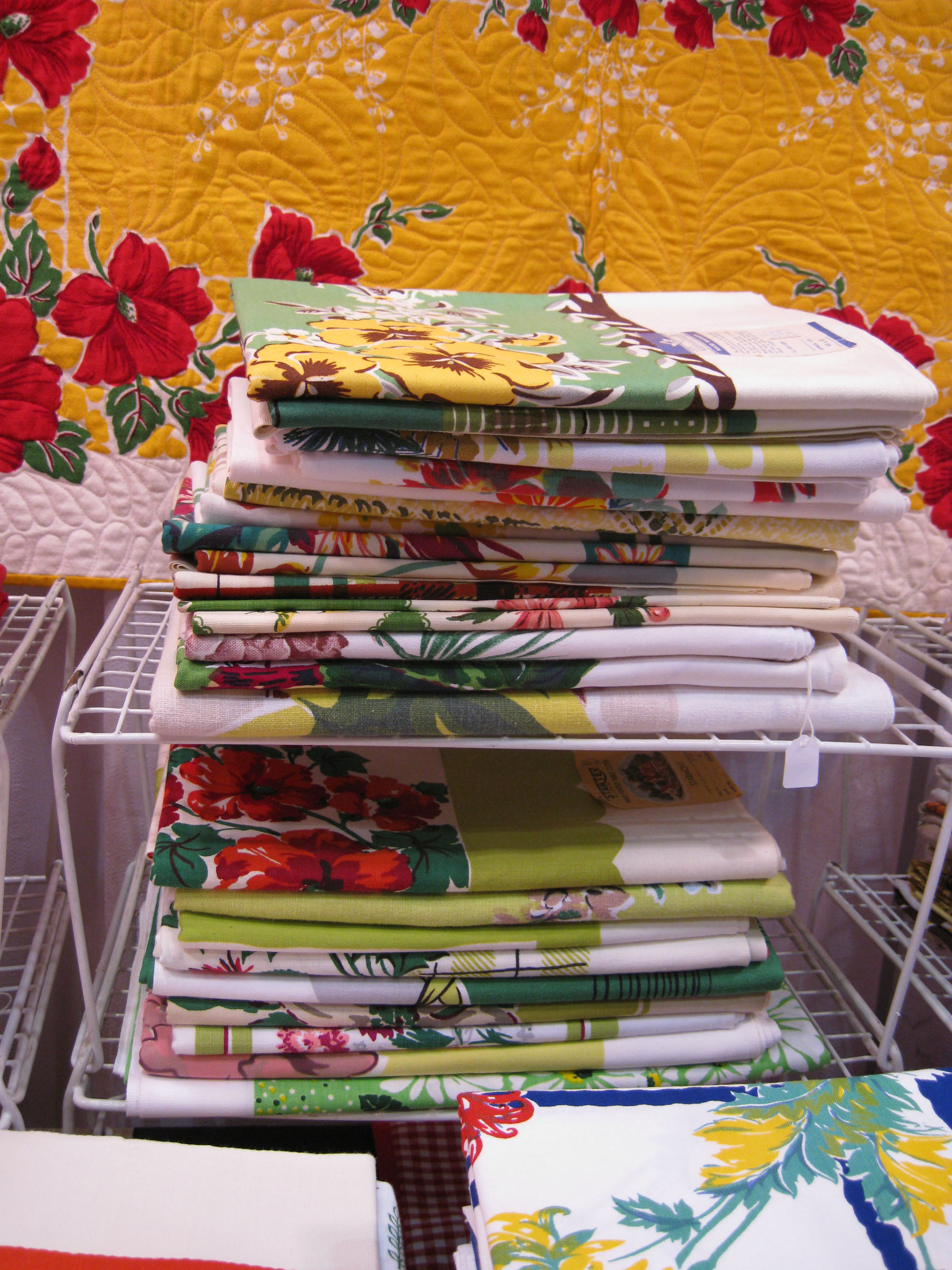 I have to tell you that I didn't realize that the tablecloth hanging above these towels was quilted until I saw the photo. (I'm pretty focused when I'm shopping.) What a good idea!
