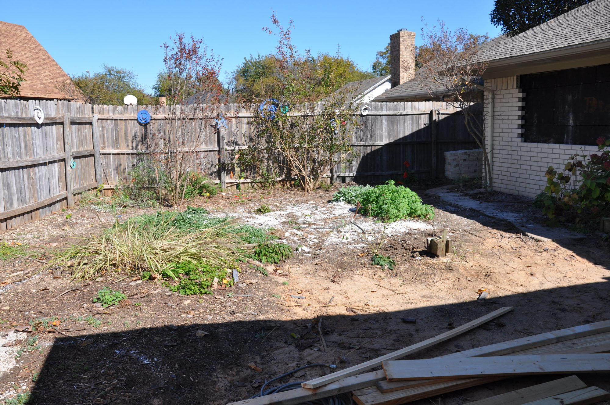 We had talked about having a pool for several years but we couldn't afford it when the kids were in school (elementary, high school, or college). But now the kids are on their own and we figured that now is the time! Our backyard is tiny so the pool will be small. That's not a bad thing – it will be more manageable. This is the way our yard looked 4 weeks ago: