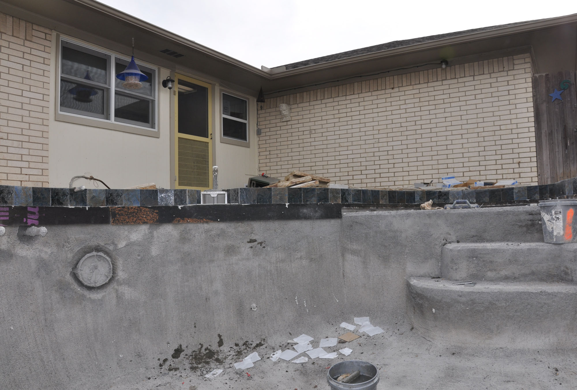 I took this photo mid-afternoon. It shows a nice view of the shallow end of the pool. Once the fence it up, I won't have this view.