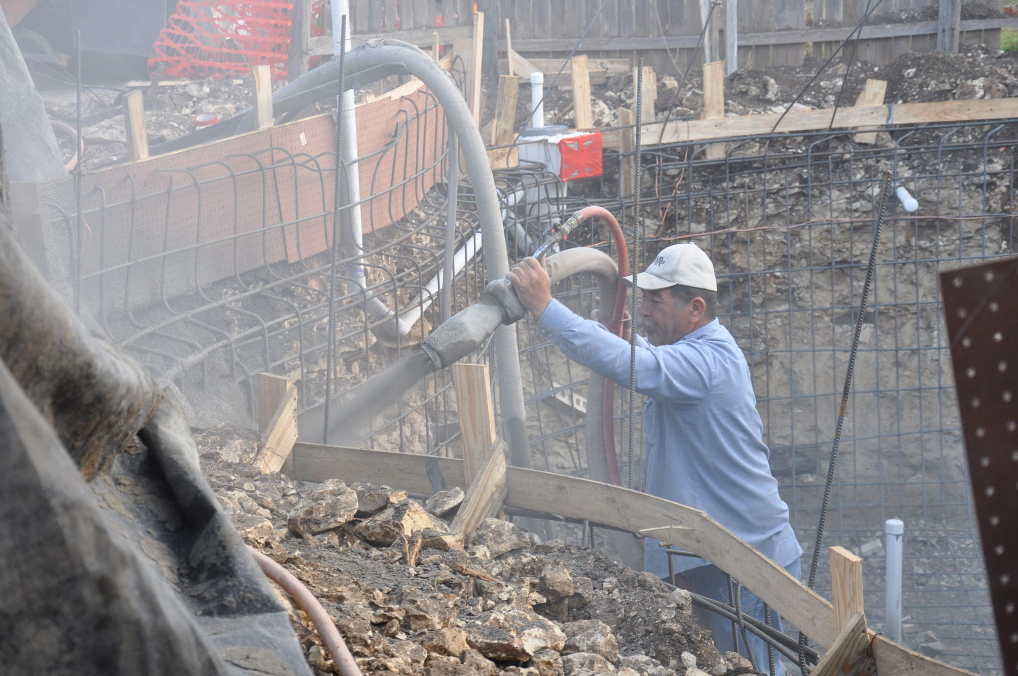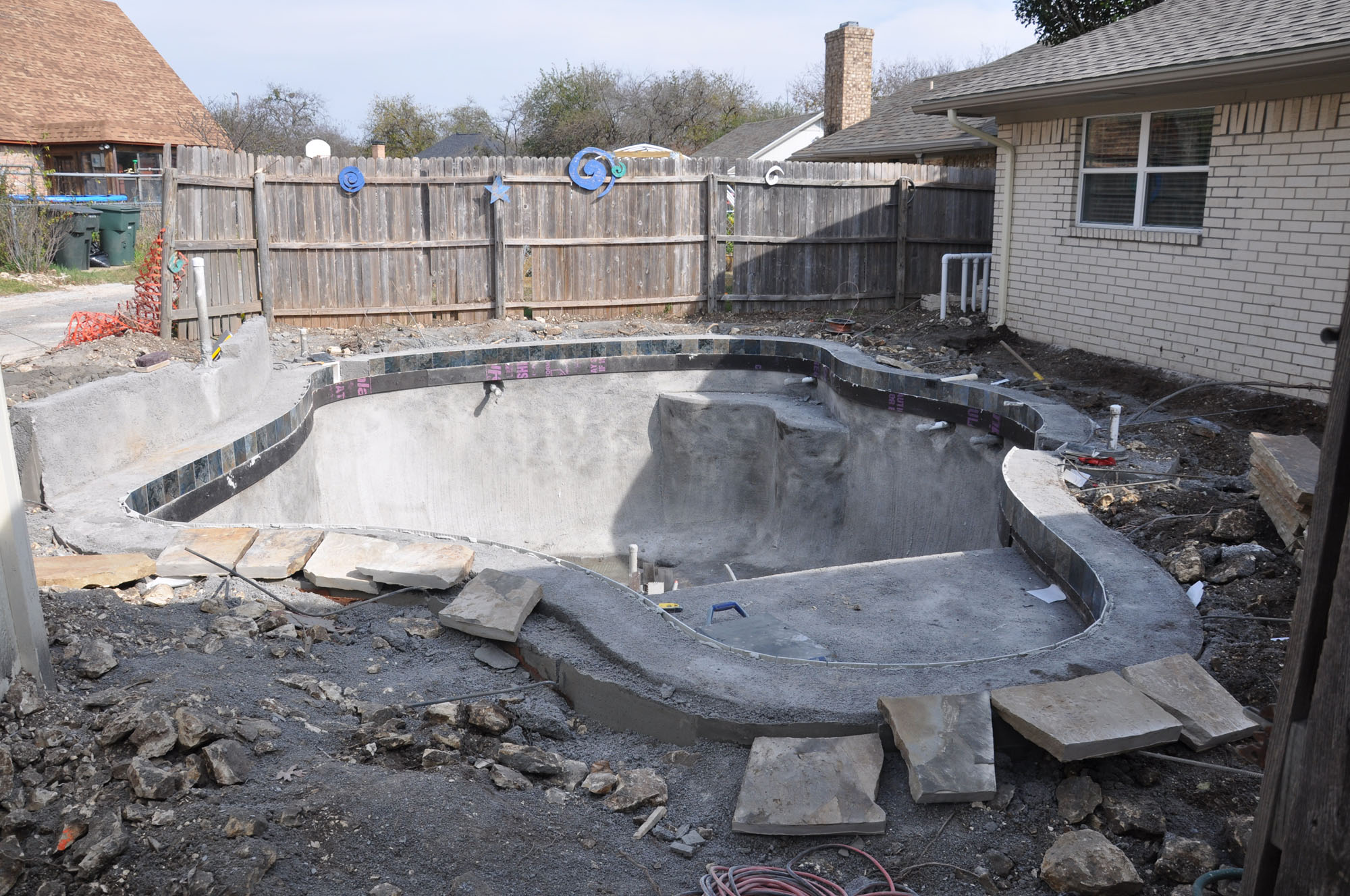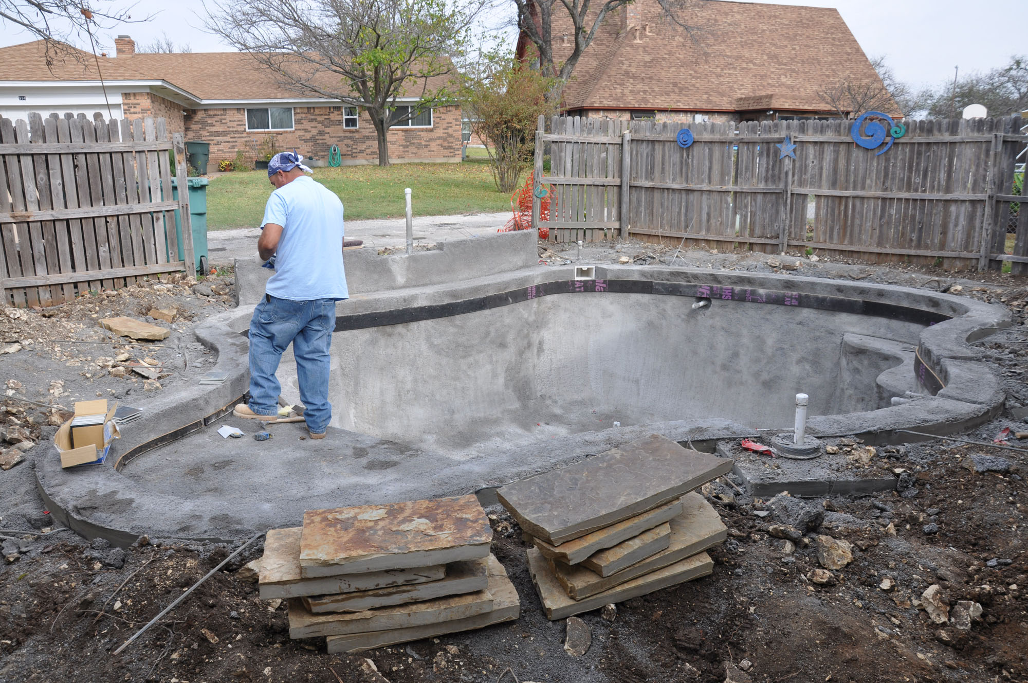 The stone is really pretty around the edge of the pool. Dave is good at his job – he's thoughtful about the way the stones go together.