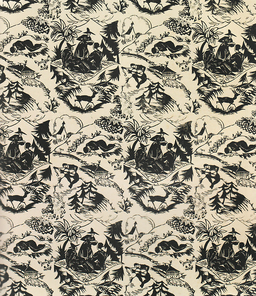 I found this a while back on Weird Friends. I don't know where I'd ever use the fabric but the designs in it are pretty good. Look at the reindeer and some of the tree shapes. They would work well as applique designs.