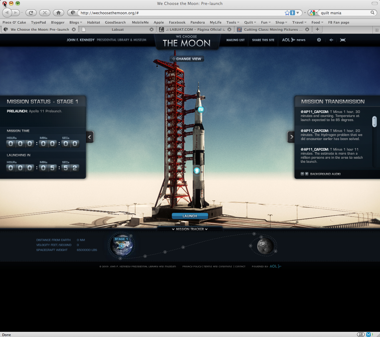 Today, as I was reading Chuck Green's ideabook.com newsletter, I learned about the FWA (favorite website awards). The 2009 winner is We Choose The Moon. Give it time to load and then enjoy the show. There are clickable links to videos, photos, and more.