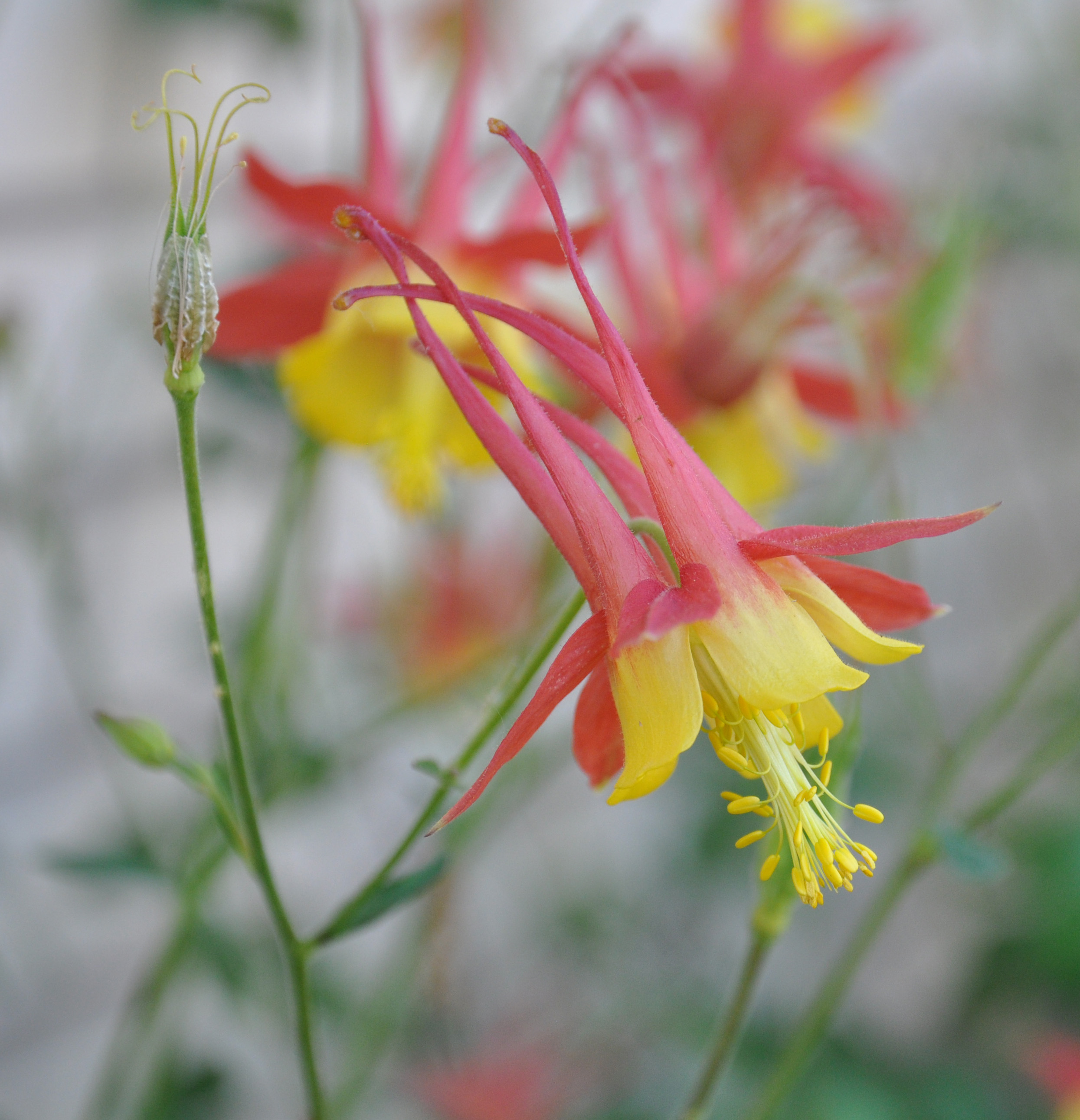 The dark bush covered with red flowers is my former 'miniature' rose. I did try to remove it once… which only made it spread more. Every now and then I whack it back, knowing that it will come back with a vengeance. I've decided to love it, which is pretty easy to do this time of year.