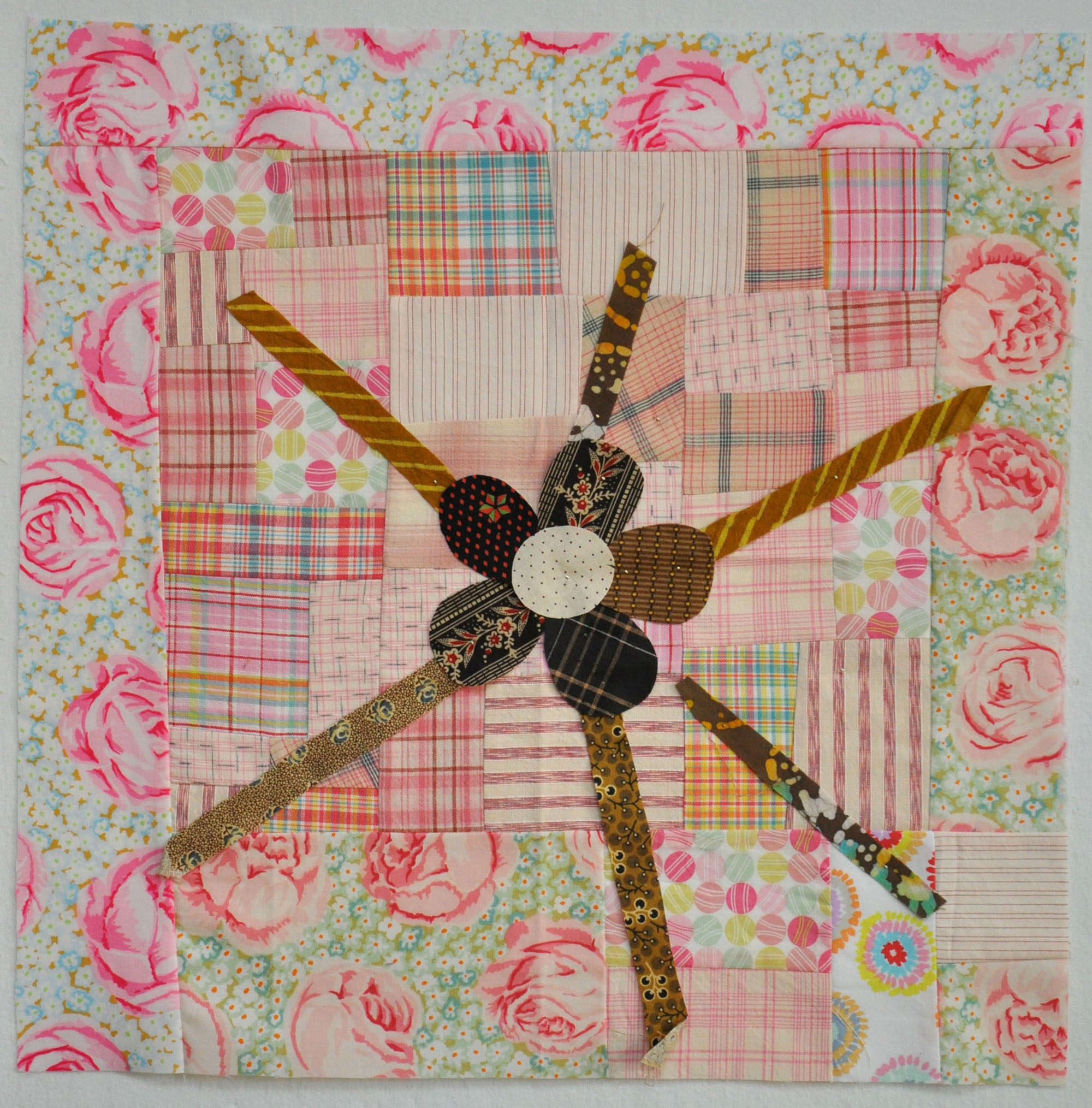 for me." This is the idea I am building my quilt on. I want it to feel empty in the center. Is empty dark or light? I started with off-white petals on the central flower. They disappeared into the background, which I expected but wasn't crazy about. For now, empty is dark – like a black hole. The flower center may go dark or stay light – it's going to depend on how the quilt builds around the center.