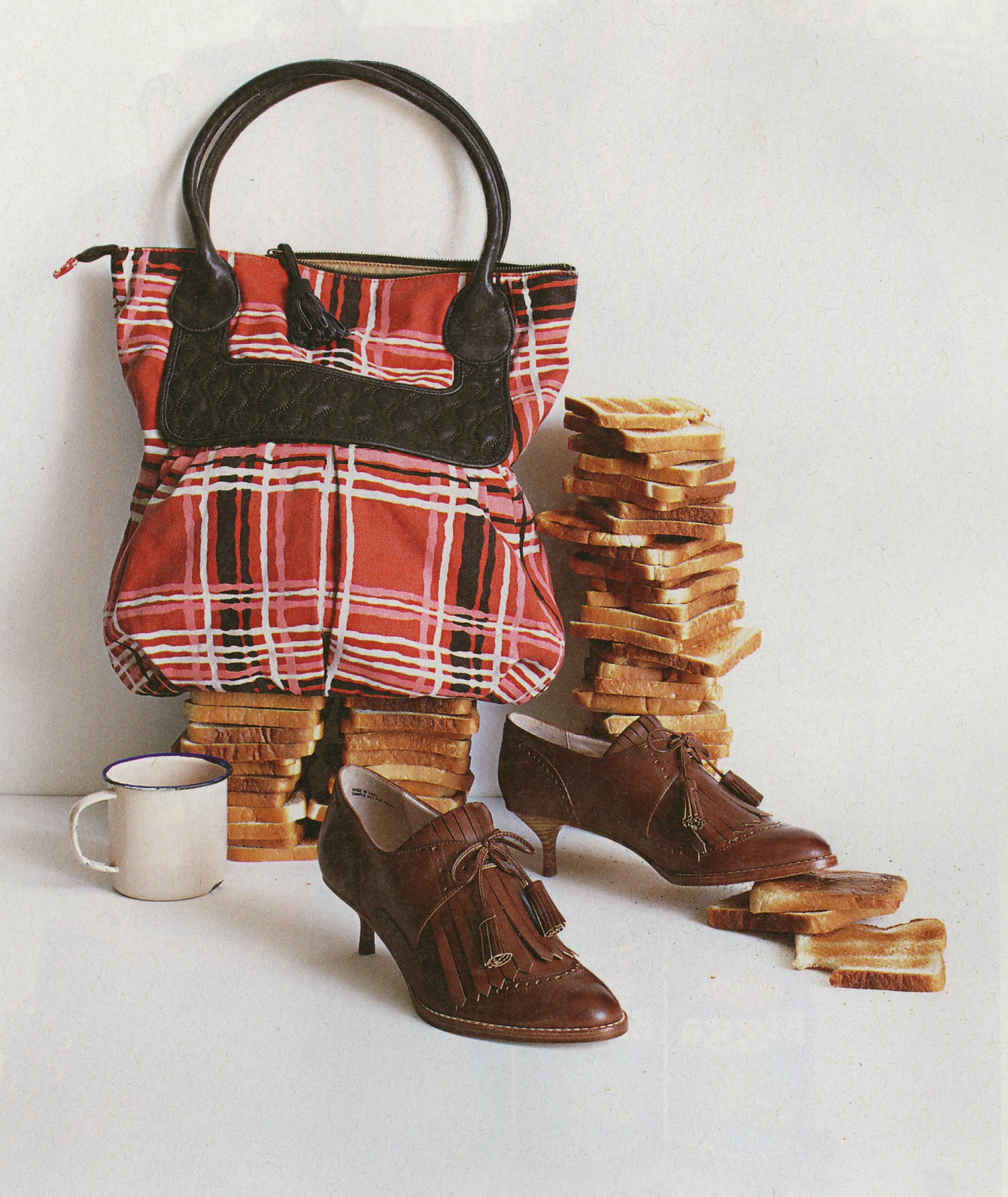 As I was flipping through the new catalog I noticed that there were a variety of shots mixing their stuff with food-stuffs. Very cute. Can you guess what one of the foods they used was? You guessed it… toast!