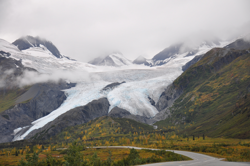 After some discussion with seasoned Alaskan travelers and after consulting the weather I decided that it might be better to drive the 6 hours rather than hope the fog cleared enough to land later in the day (which it did). Sheila, my contact at the Valdez Quilt Festival, agreed so I rented a car and took off.