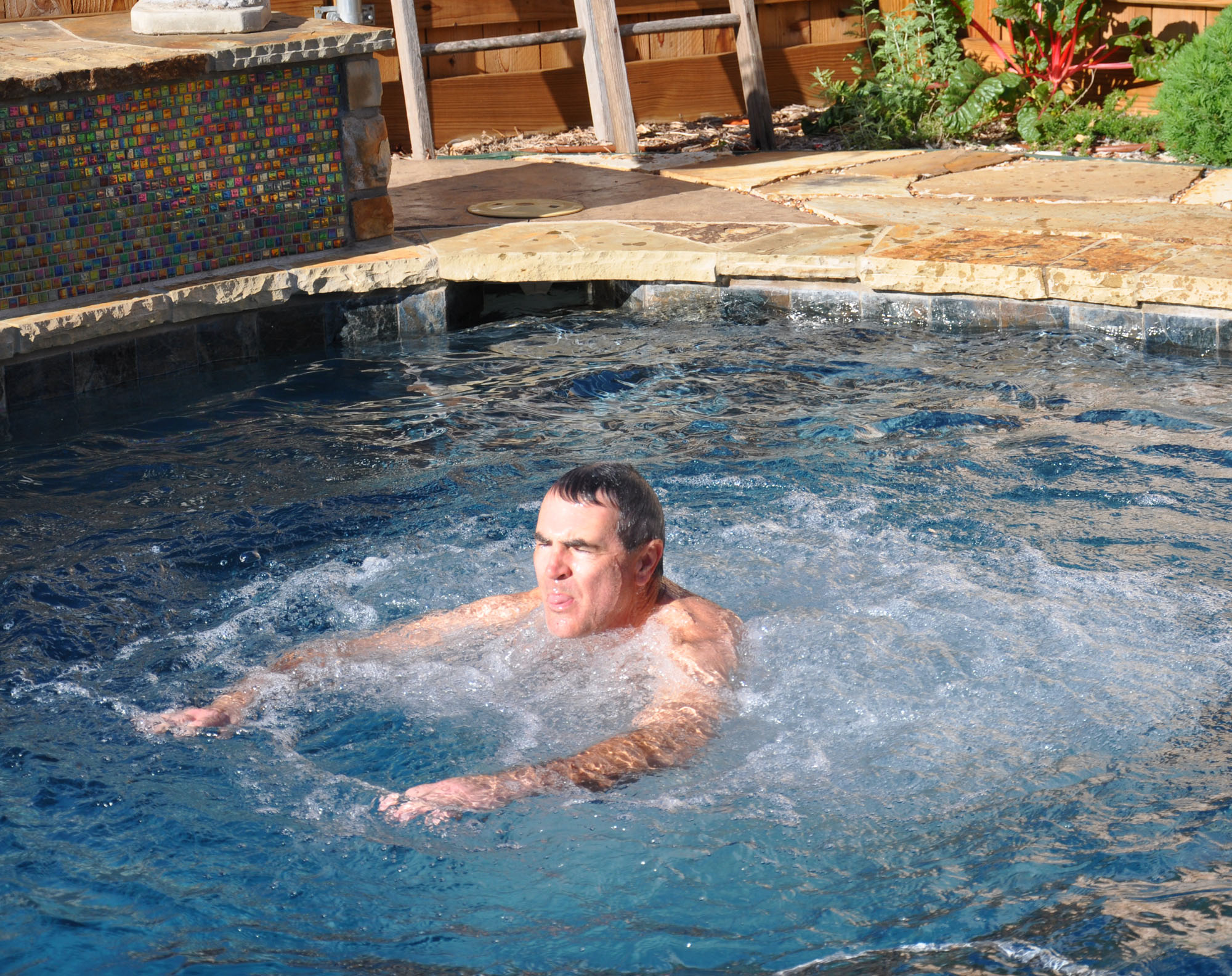 It's mid-November and he's still jumping into the pool! I haven't been in the water in over a month because it's COLD (in the 50s). Steve doesn't stay in long but I'm amazed that he's in at all.