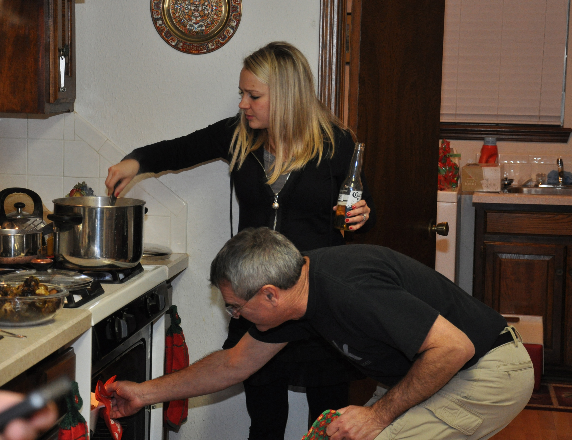 I didn't take enough pictures – I chose to enjoy the party instead. But that's Jeff and Chris, above, and Steve with our neice Rachel, who has a catering business, busy in the kitchen.