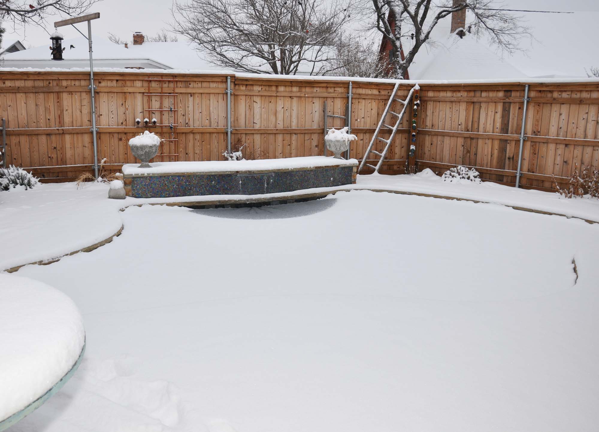 We had to turn off the pool pump a couple of days ago because of the power outages so the pool has about 1/2" of ice on it, maybe more. We had 3-6" of snow overnight. This morning it was hard to find the edge of the pool and it made me nervous to walk around it – so I mostly didn't walk around it!