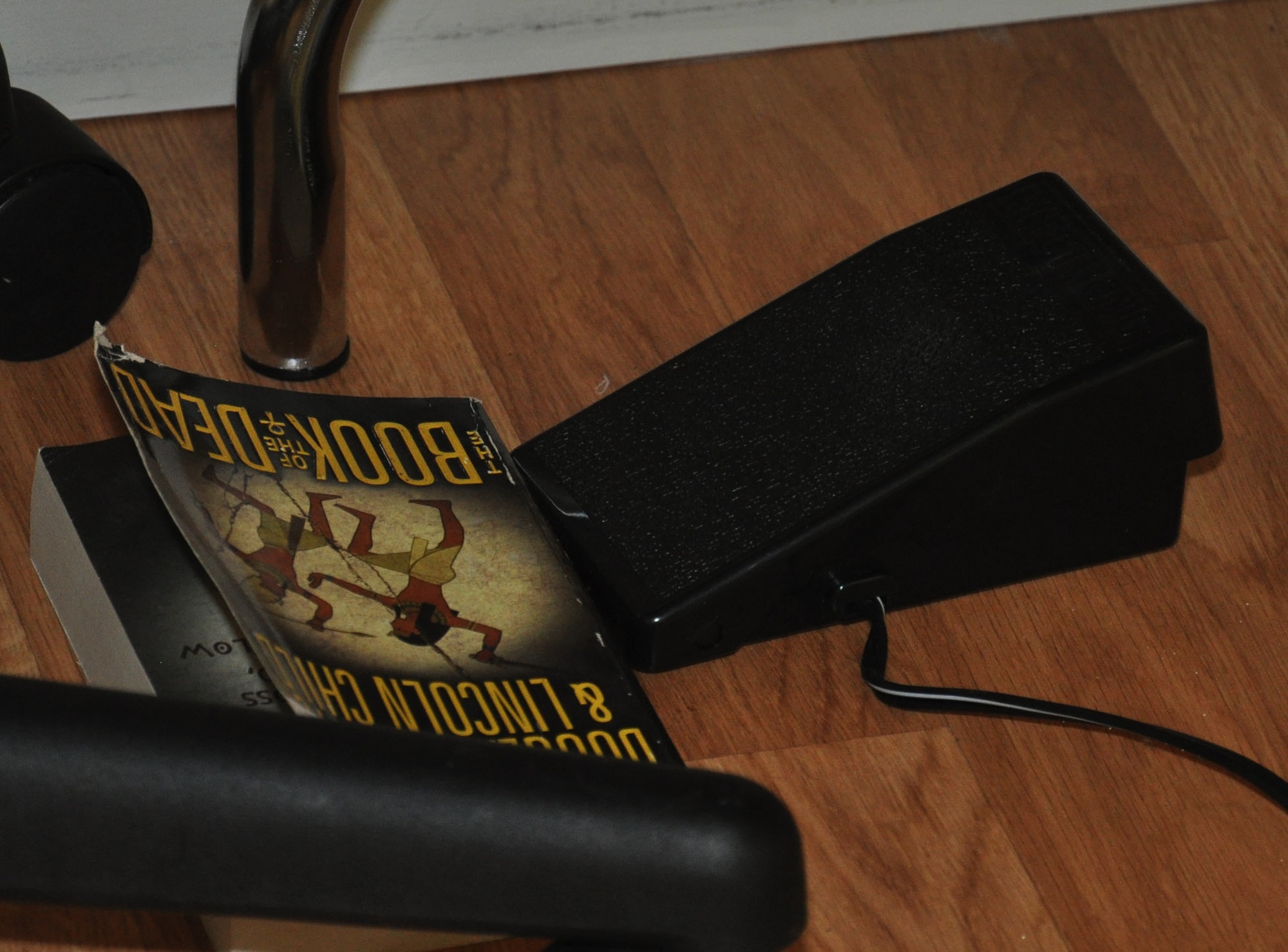 The foot control is very sensitive. And the slope seems high. I put a paperback book at the base of the foot control. I rest my heel on it and it has helped me control the stitching speed and my ankle is less stressed.