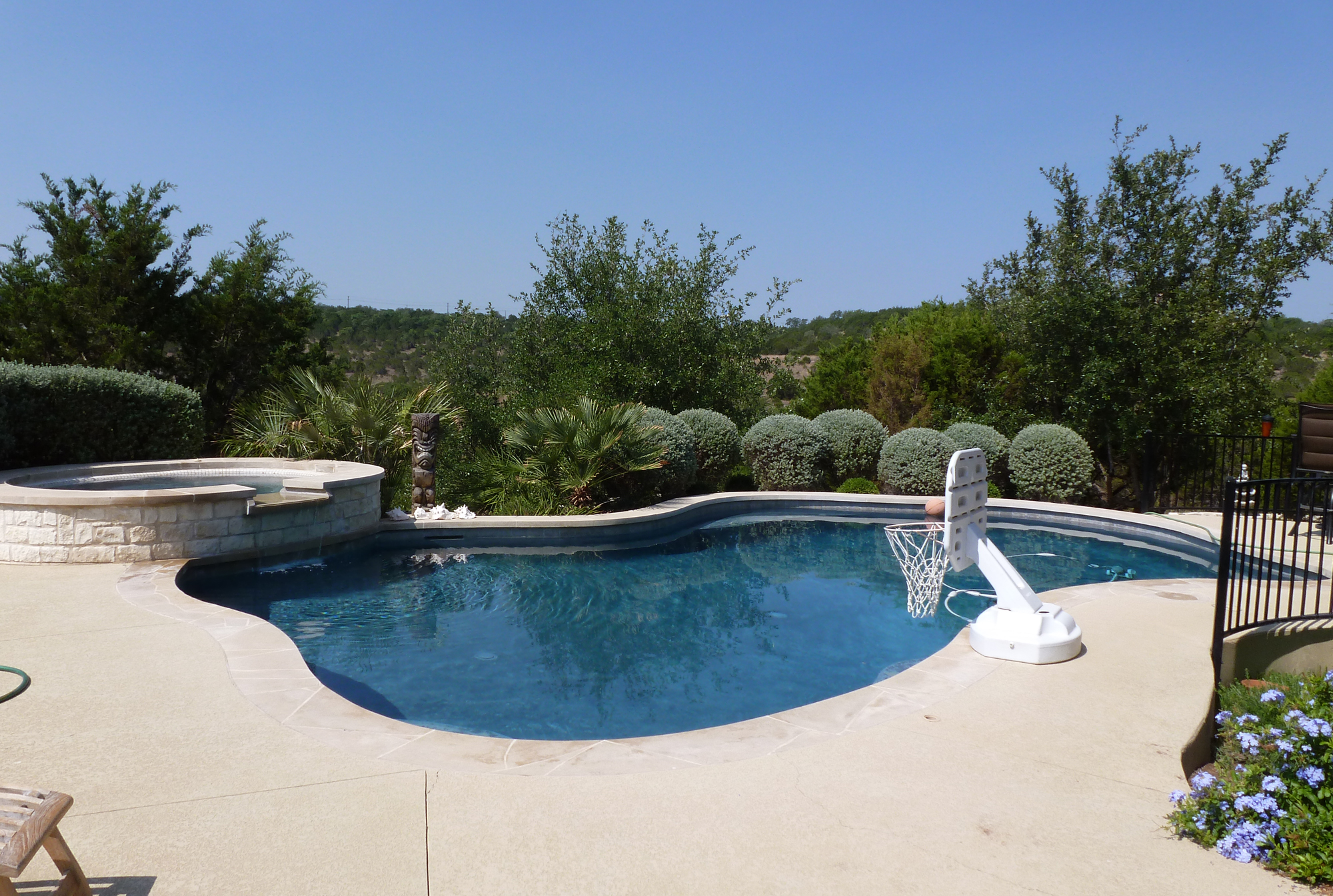You can't really tell from this photo but the land drops down just beyond the pool into a not-insignificant valley. Where it looks like the hill slopes up beyond the pool it is really the hill on the other side of the valley. Dory and Eric are about 15 minutes from great shopping but you'd never know it when you are at their house.