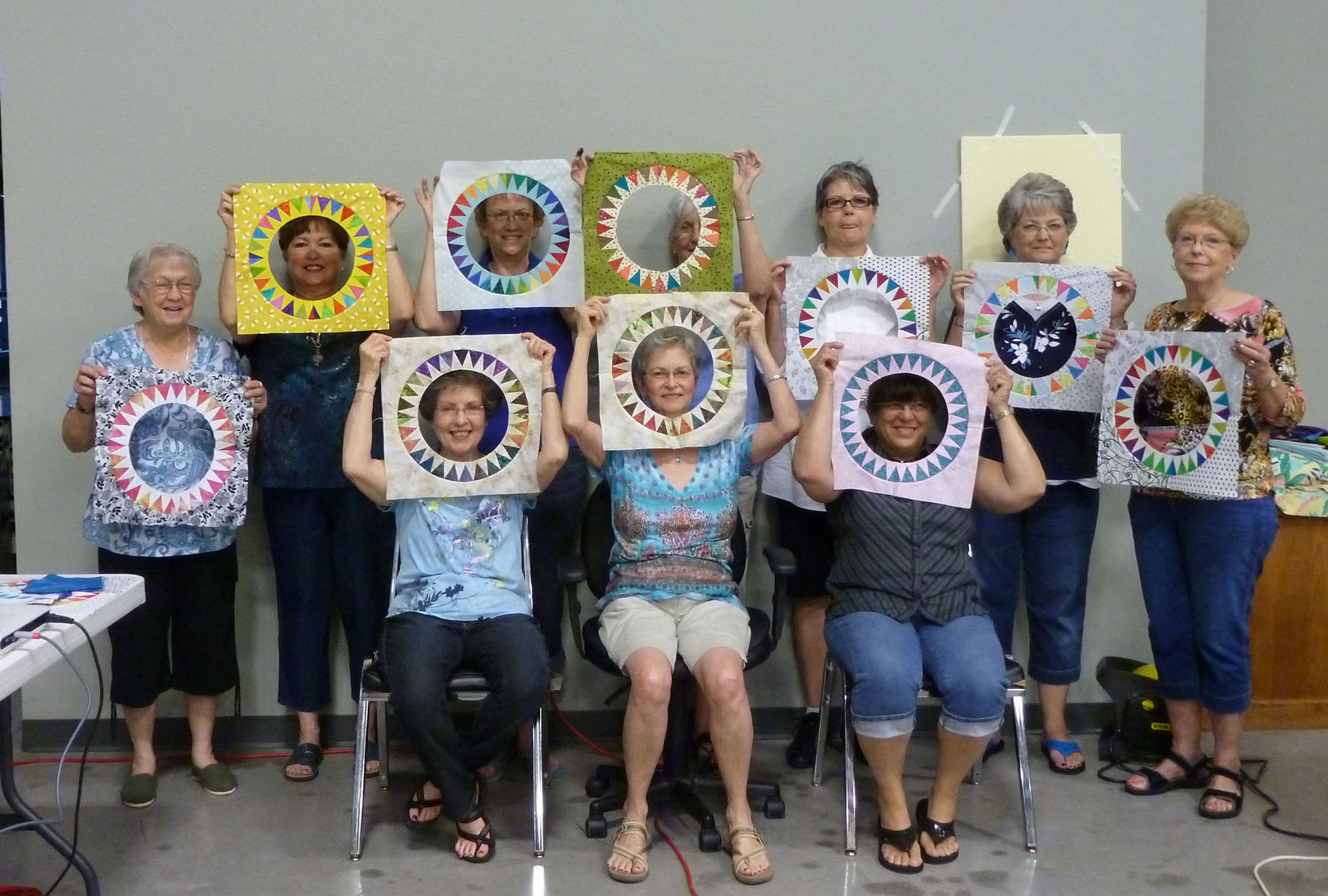 Yesterday was the 2nd day of the 2-day class I taught in Duncan, OK. Most of the students brought their pieced arcs for this photo. Cute, huh! Everyone did a great job.
