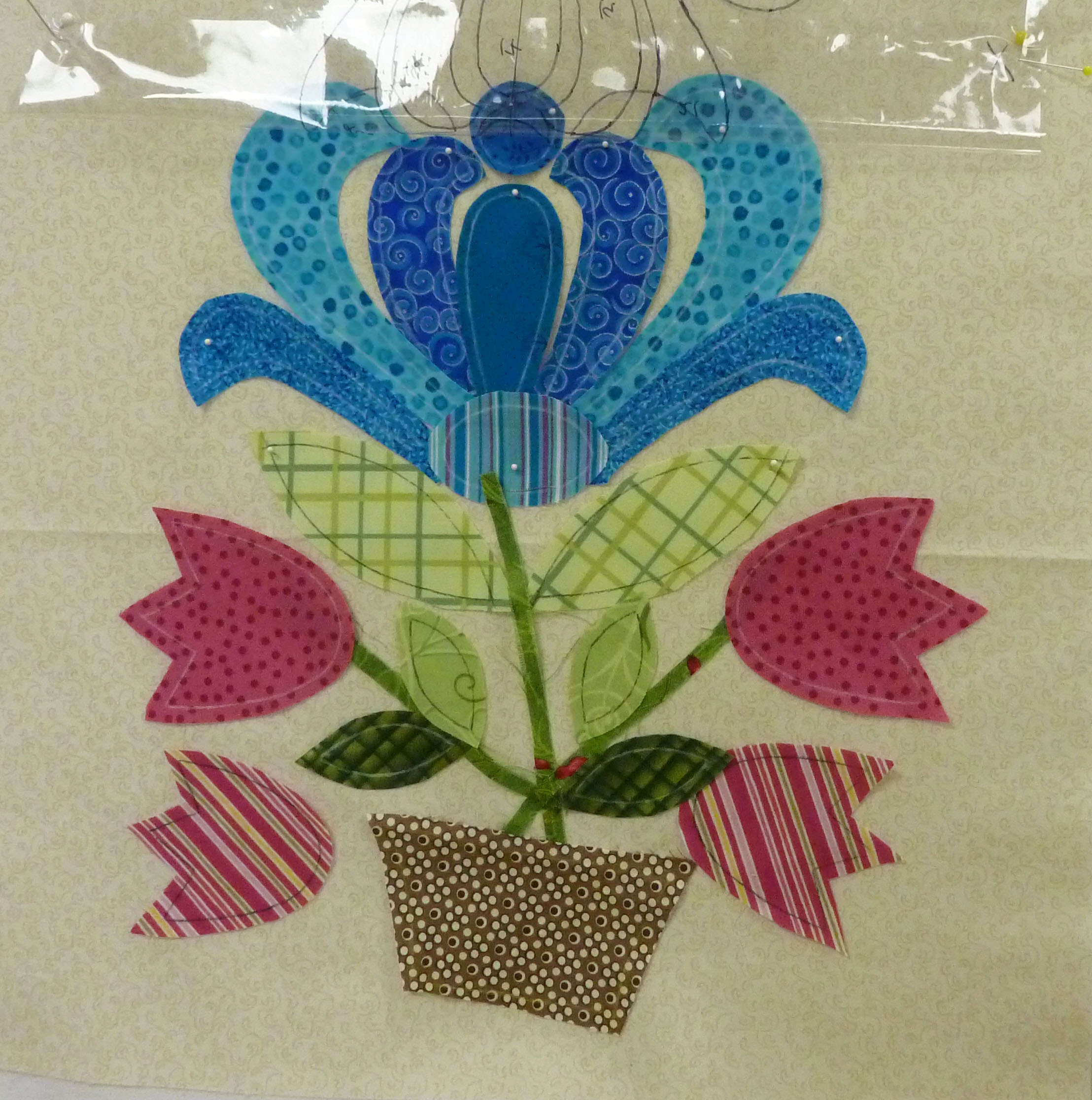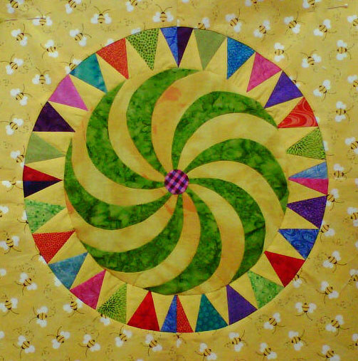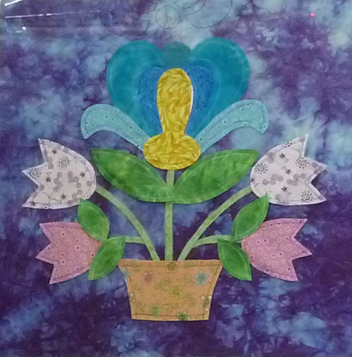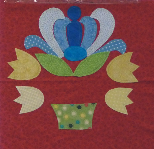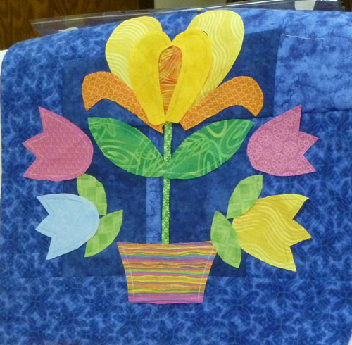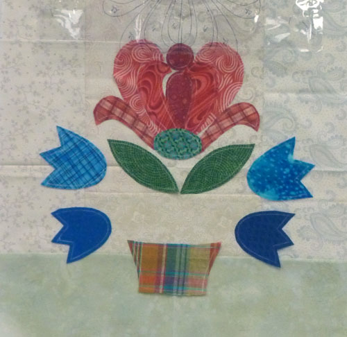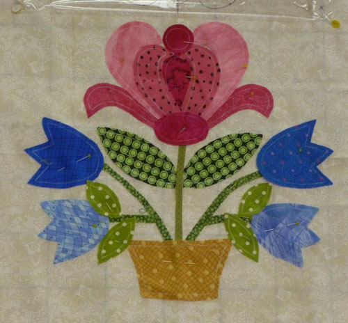 Colleen, one of the ladies in class, sent me this photo today. She has been really busy appliqueing the center of the block. Great job!