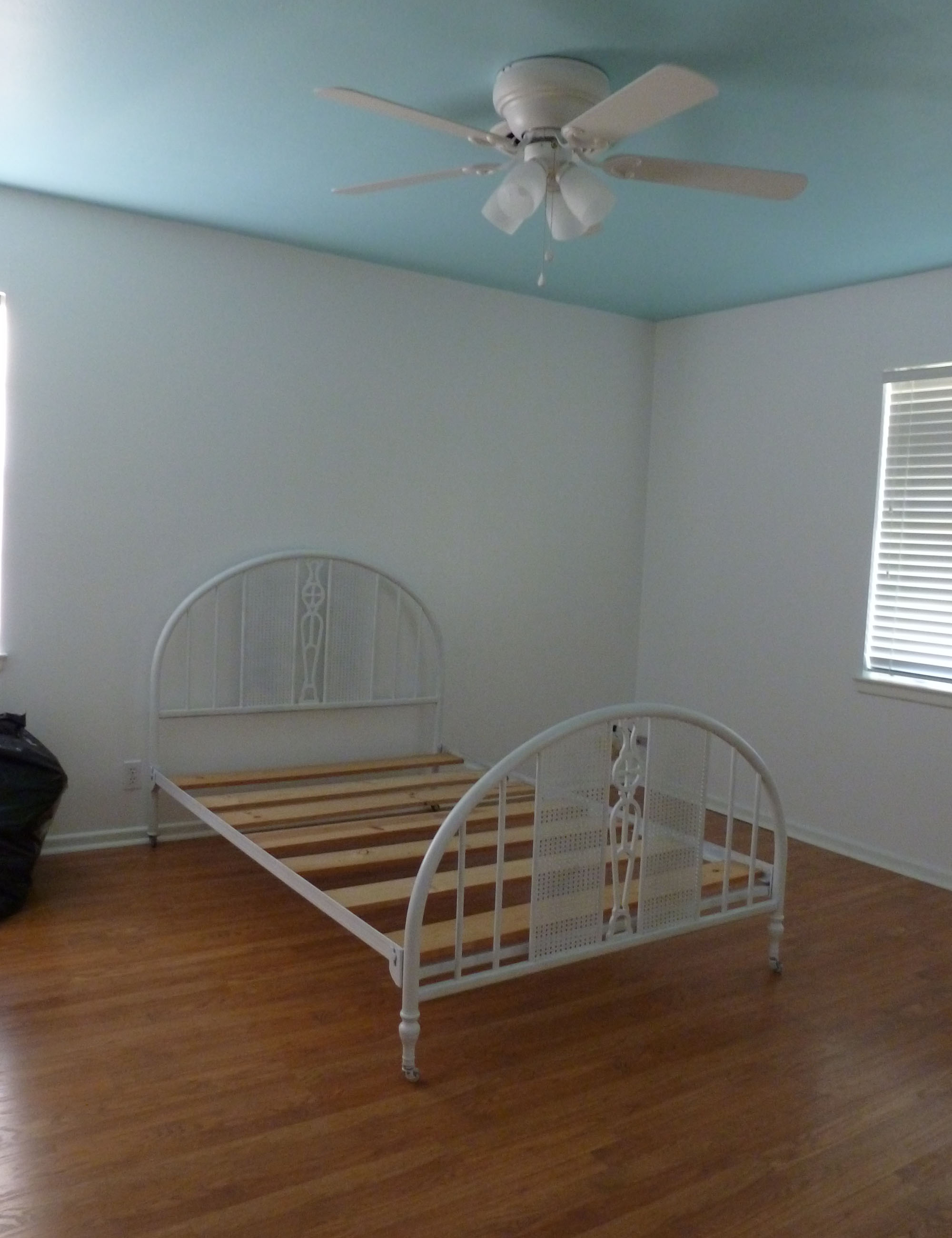 We moved a few things to the house over the weekend. My sister's bed was one of them. It got a fresh coat of paint before moving in.