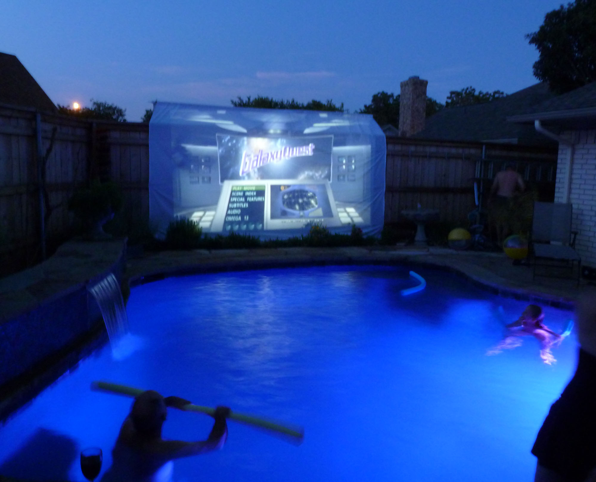 We have plans on how to make the screen better next year but no one is complaining now :-). By the time we hit play there were more folks in the water but it was pleasant enough that those who wanted to stay dry also enjoyed it. There will be more news tomorrow – I'm not sure what it will be, but I'll let you know!