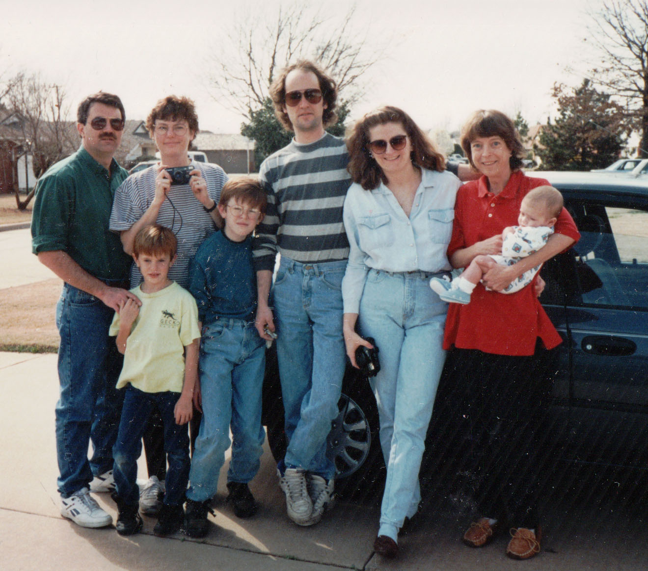 I had a perm. Oh my. The kids were little. My brother was still speaking to me! (His wife still does speak to me and his baby daughter is 19 now.) Those were the days. I have lots of car pics from OKC and they bring back so many memories. We always huddled and smiled by the car before driving away. It was a good tradition. I need to remember to start snapping pics before we drive the kids to the airport to go home.