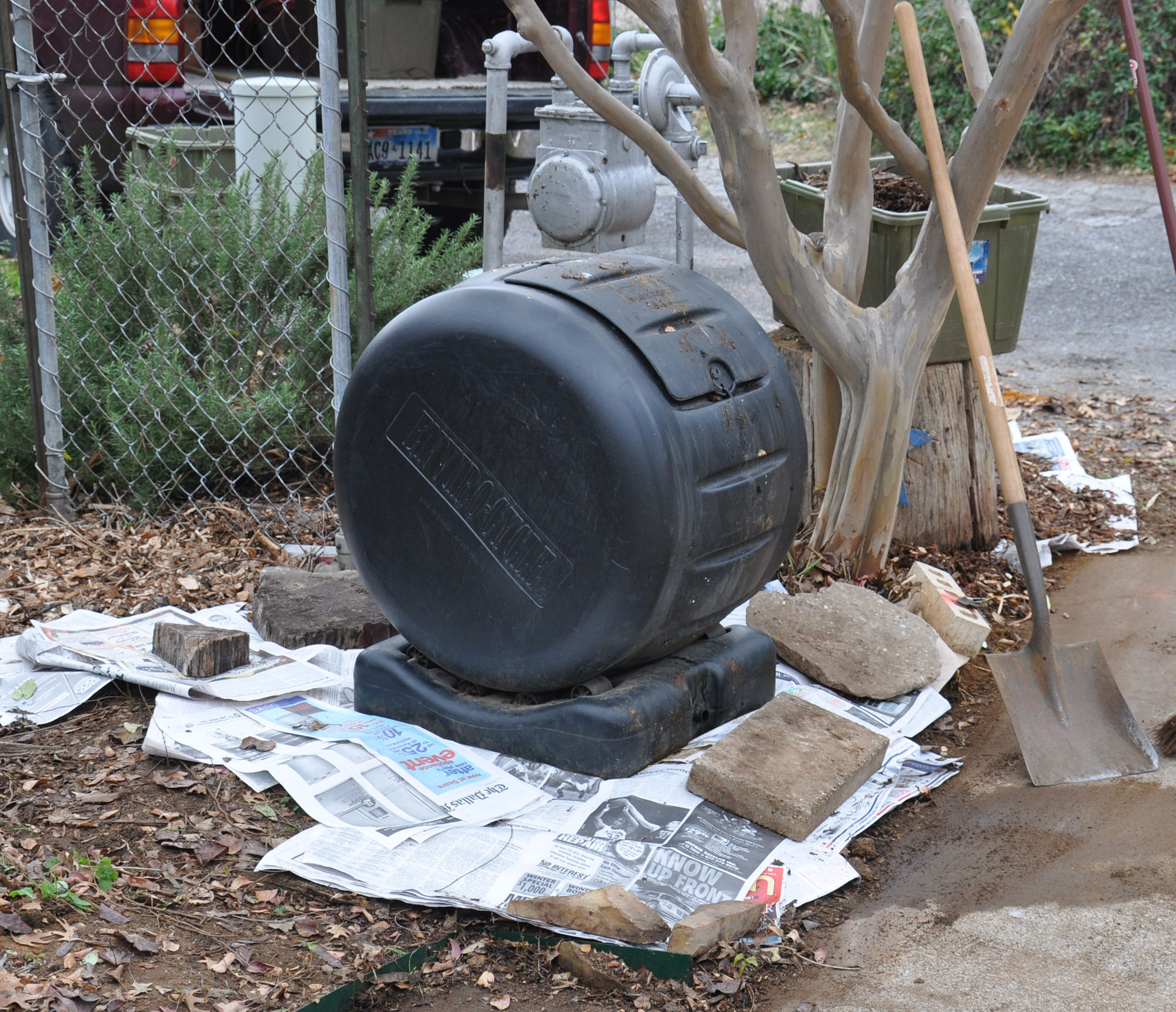 We raked out the leaves and then layed down 4 layers of newspaper. It was at this point that I realized I did not have anywhere near enough newspaper. So I went dumpster-diving down the alley and was stunned to see that almost none of my neighbors take the paper or, if they do, they are not recycling. I called friends and got some newspapers but this job is going to take more time as we have to collect newspapers.