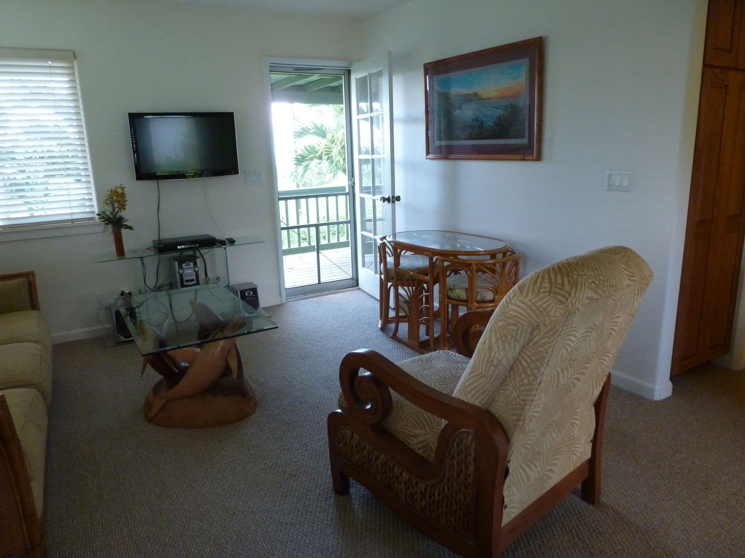 If you walk out the door in the living room, you are on our lanai. Nice! It's too wet to sit out there right now but I have hope that tomorrow will be drier.