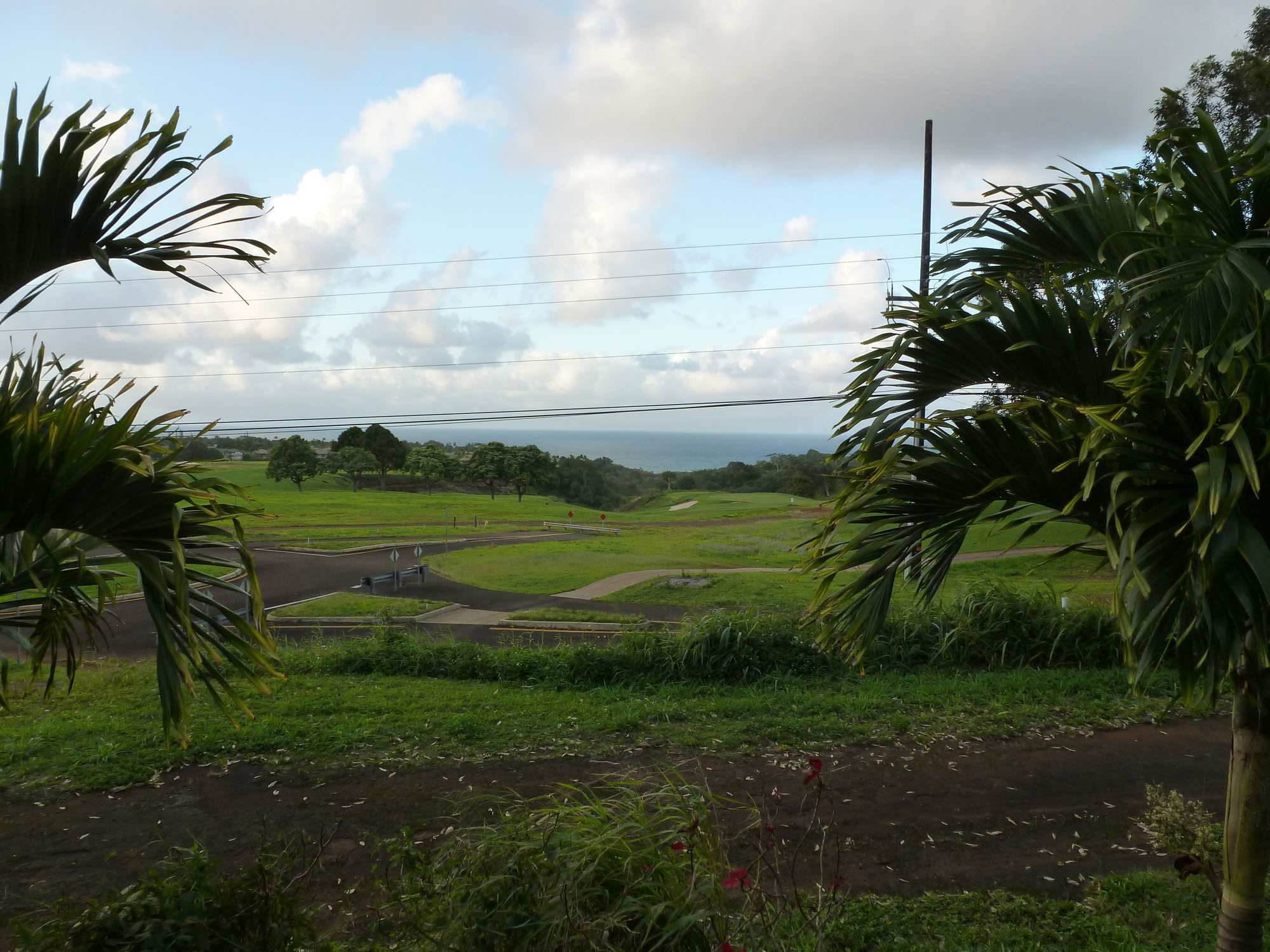We look out over a golf course. The ocean is off in the distance which is fine. (Note to the parents of Lola and Elanor: we are in no danger of flooding. We are way uphill and there isn't a river nearby.)
