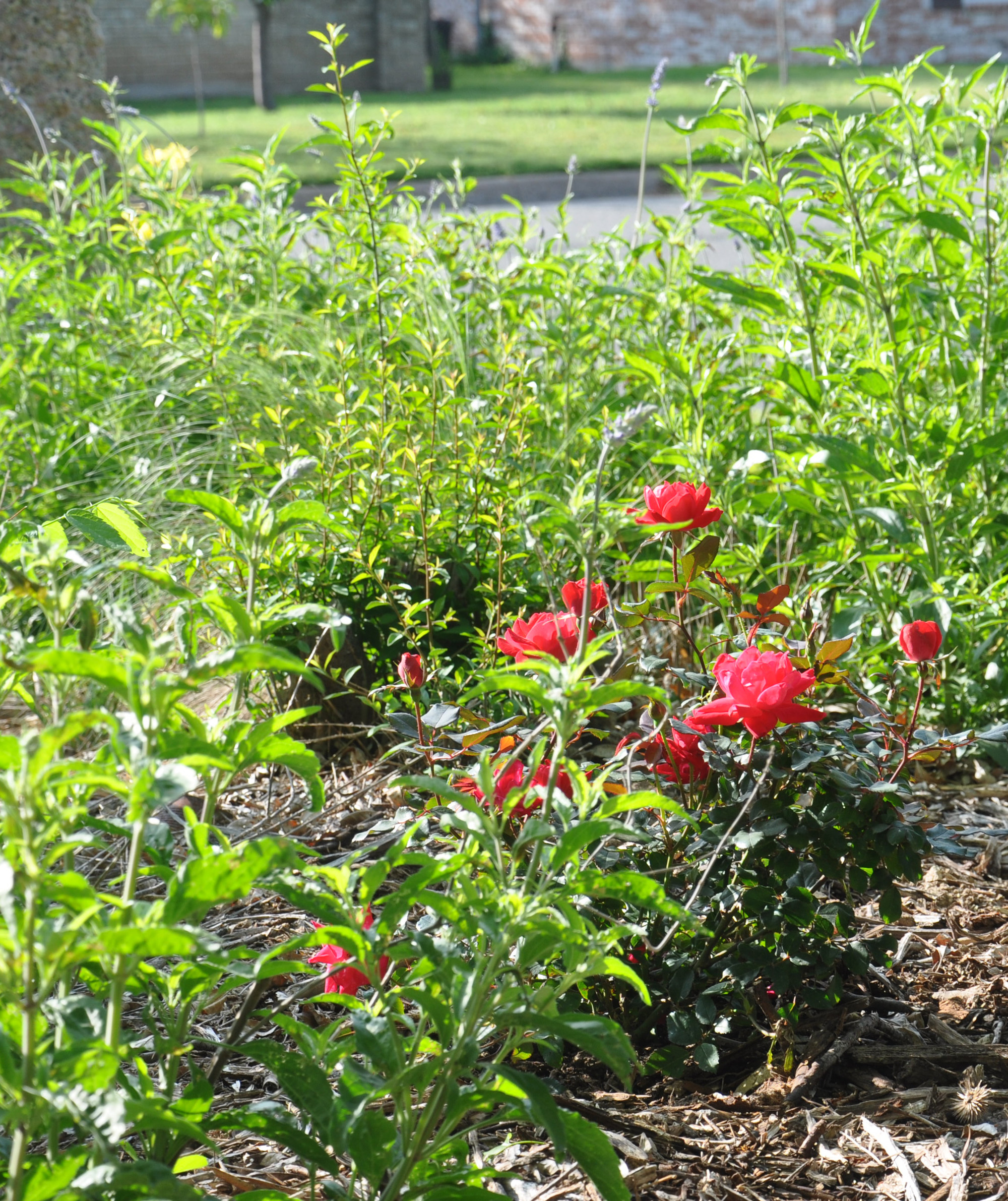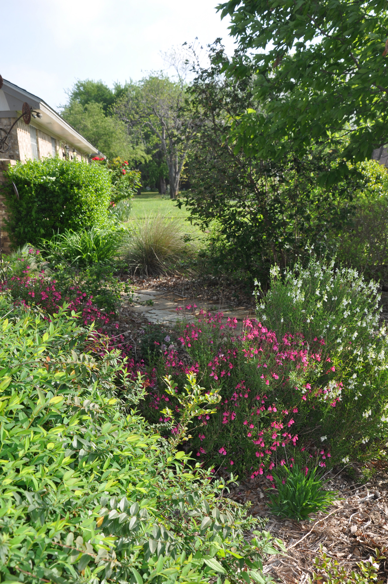 You can't really see it but I planted a lilac bush just beyond those pink salvias. It should be around 4' tall if it survives. I have not had much luck with lilacs but the man at Twin Oaks said that he had had luck with this variety. To me that lilac is the essence of hopefulness.
