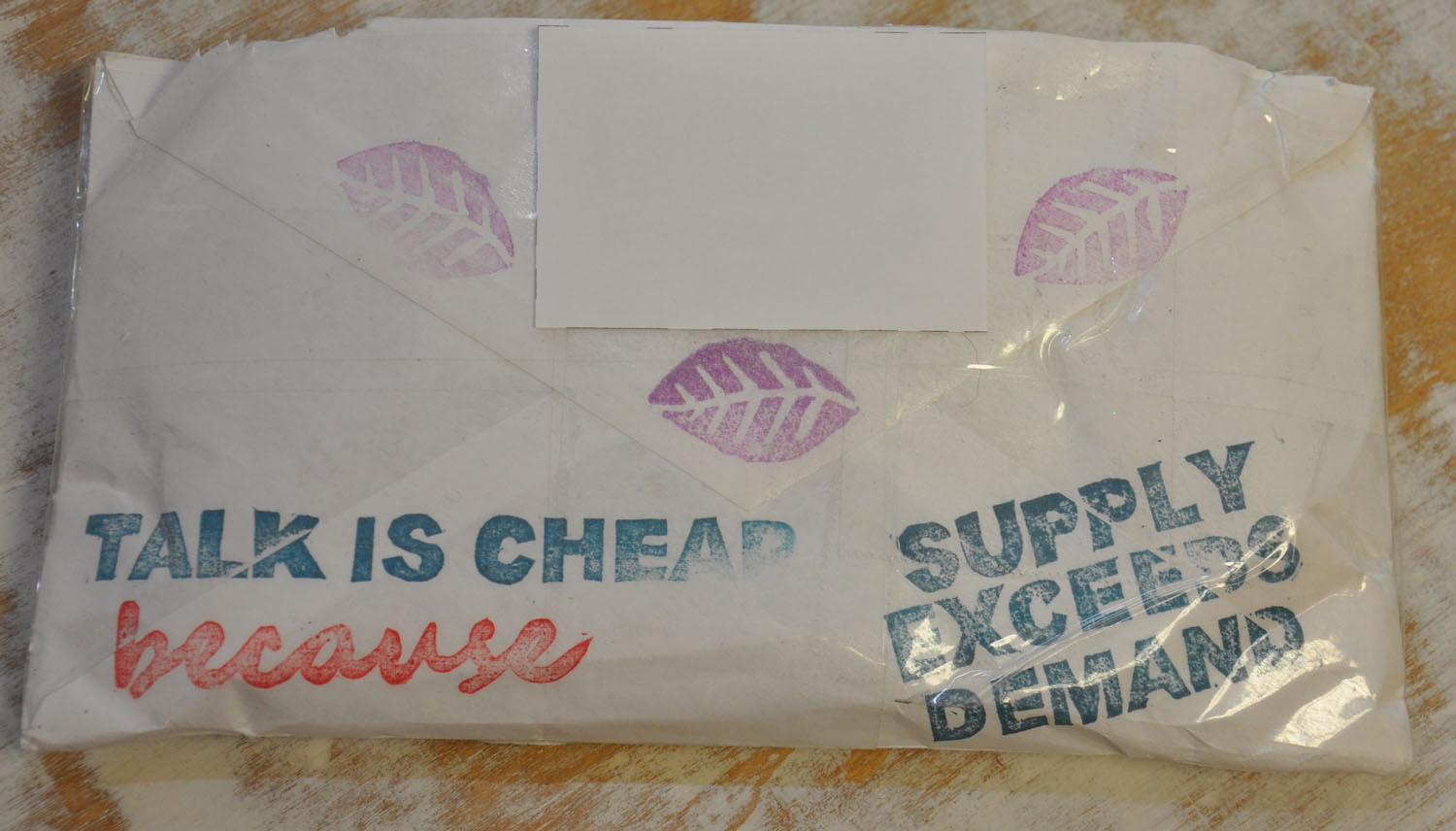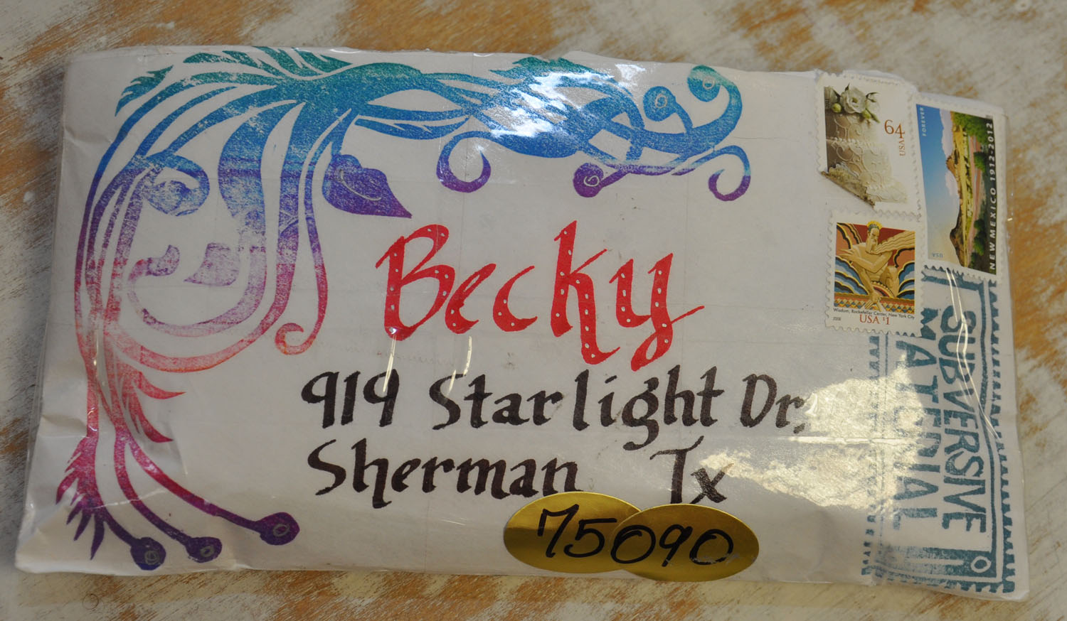 I admit that I send boring mail – at least on the outside. This really, really makes me wish I had time to perk up my envelopes. Maybe in August I can find a day to dye/paint them…