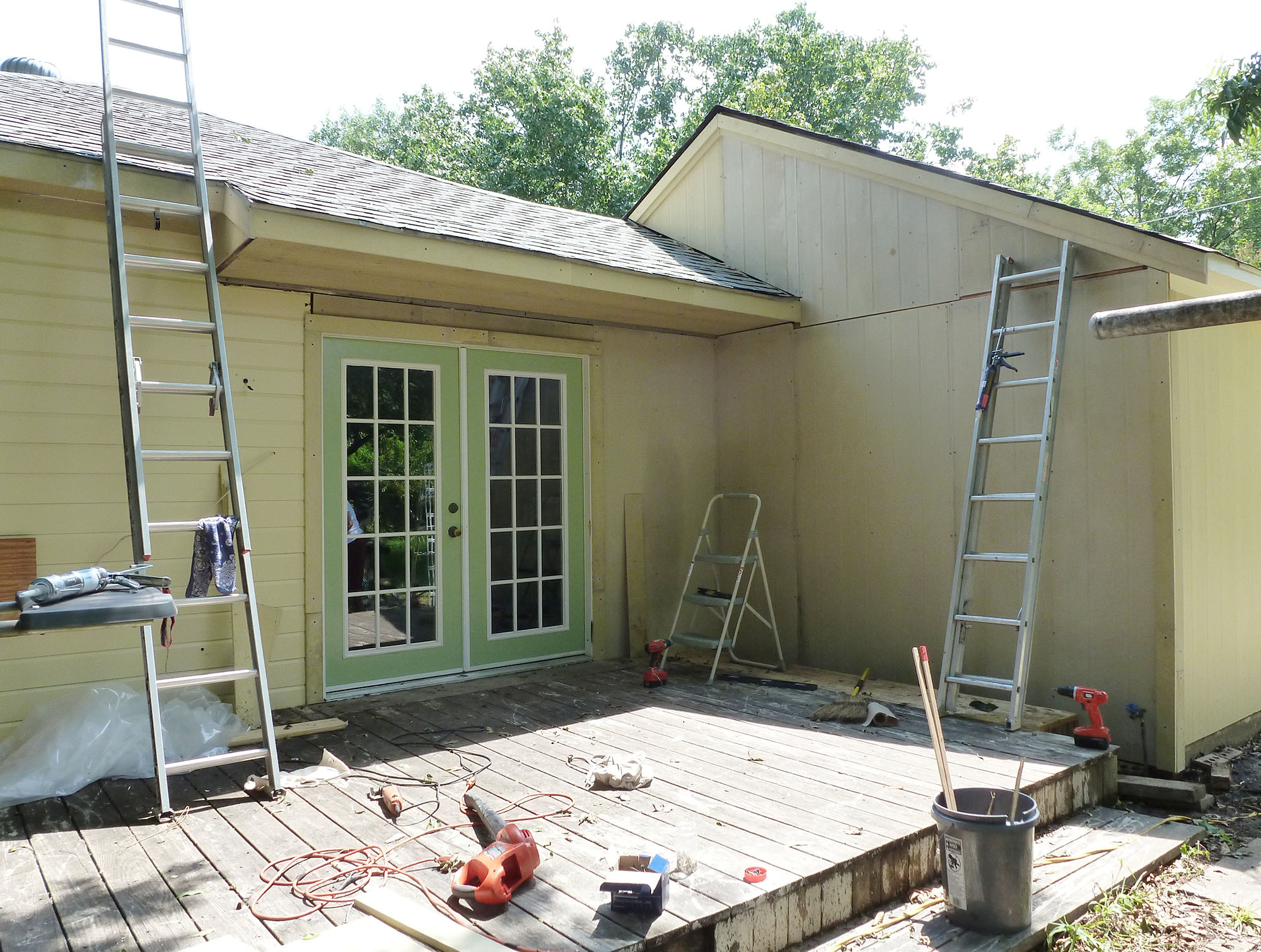 As Chris and Steve are saying, combat operations are now over. I'm finished, they still have some detail work for tomorrow. Here's the back of the house, before: