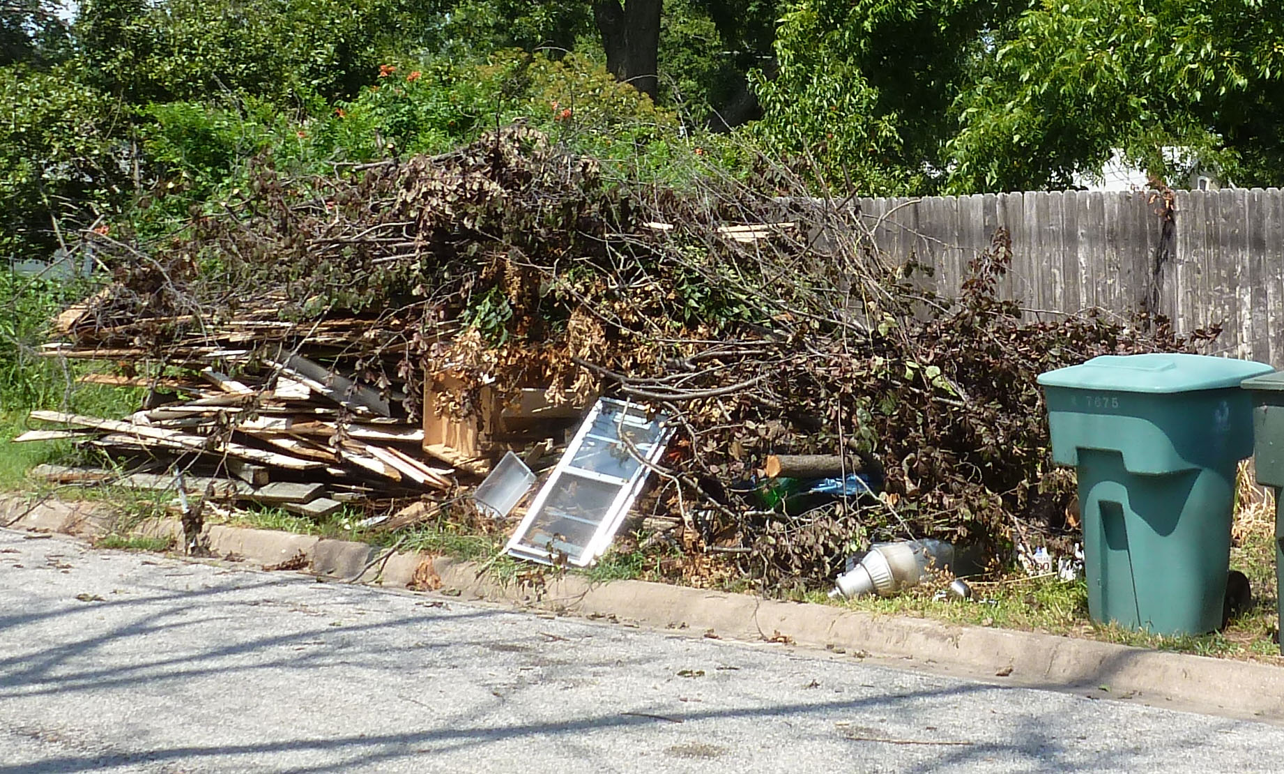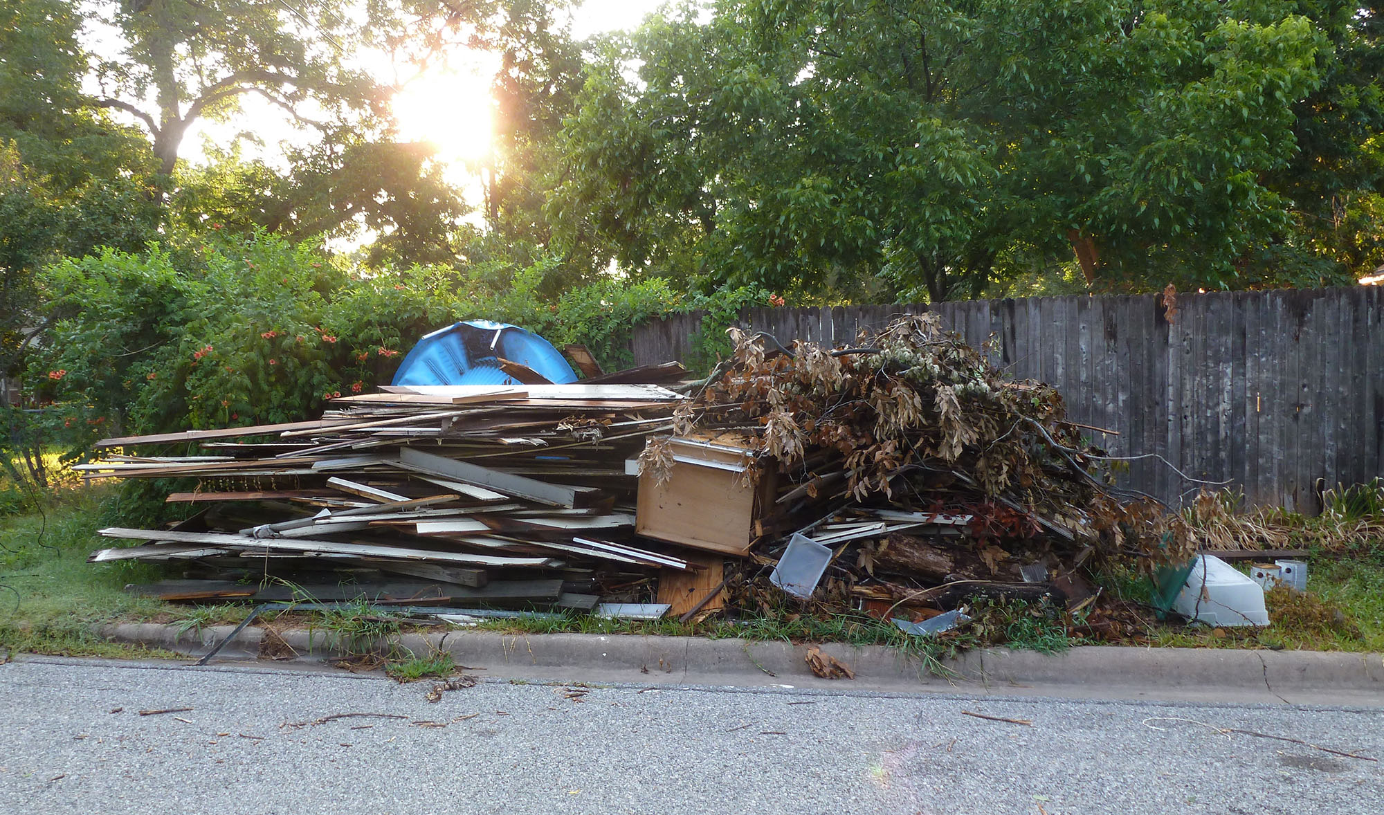 Luckily the City of Sherman has a once a month pick-up of huge piles of debris. This pile is big, really big. The pickup is Monday, let's hope it's gone at the end of the day.