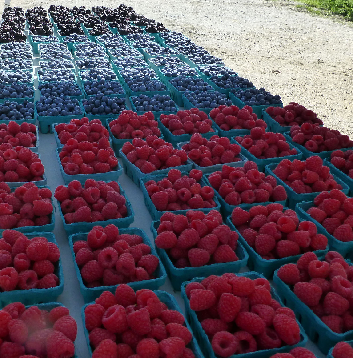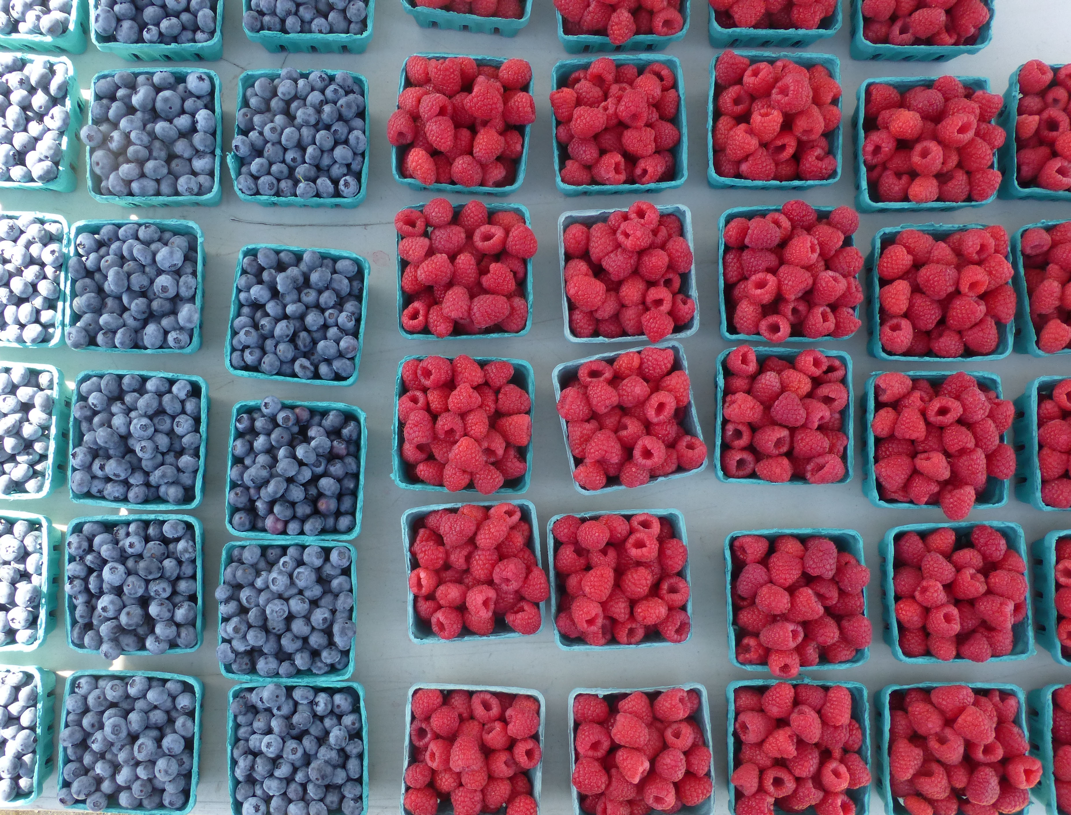 I love the aqua boxes. They are like sashing between the colorful fruit. The man behind the stand was looking at me funny as I took pictures of his tables.