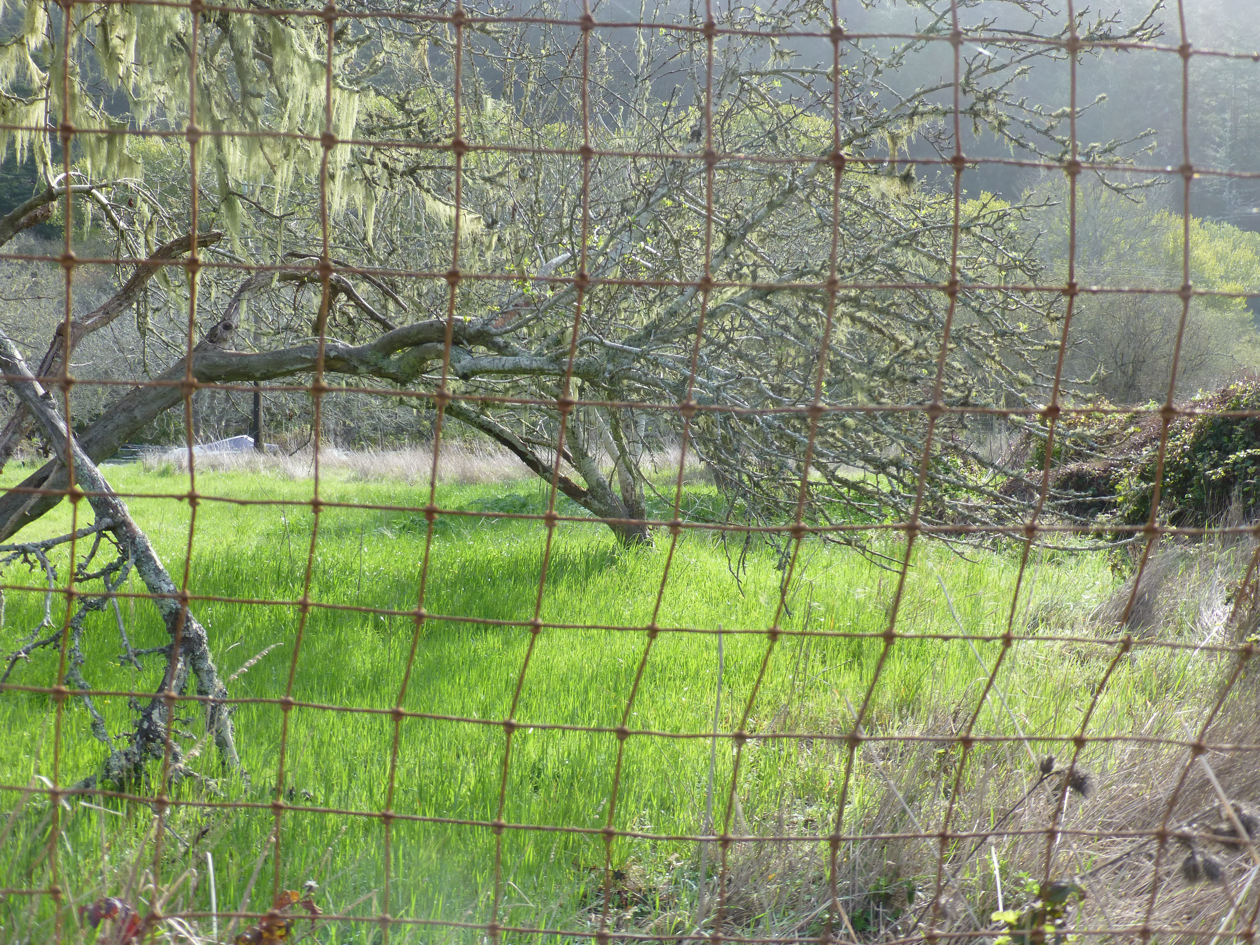 The next photo is not so much about color as it is the pulled grid of the fence that lays over the scenery behind.