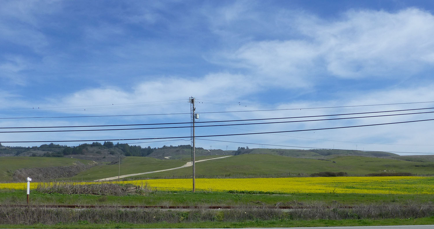 The field of yellow flowers (next) was eye-popping set into the drabber grasses…