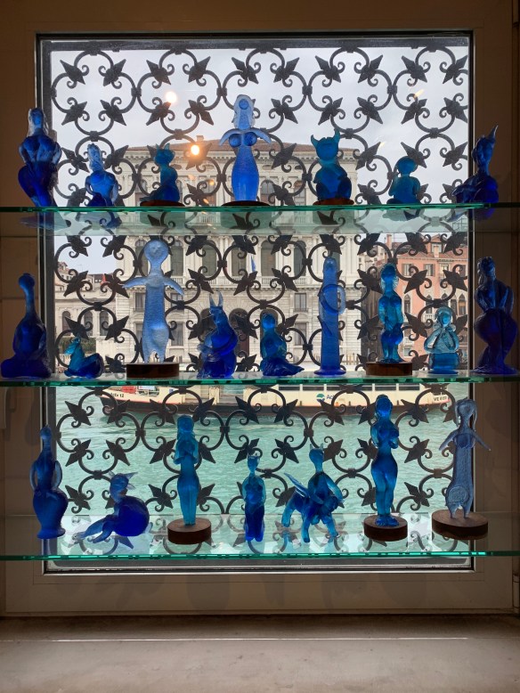 Loved the picture of the homely guy. What a hoot! The blue glass figurines in the case by Guggenheim’s statue looked gorgeous! Thanks for sharing your trip.