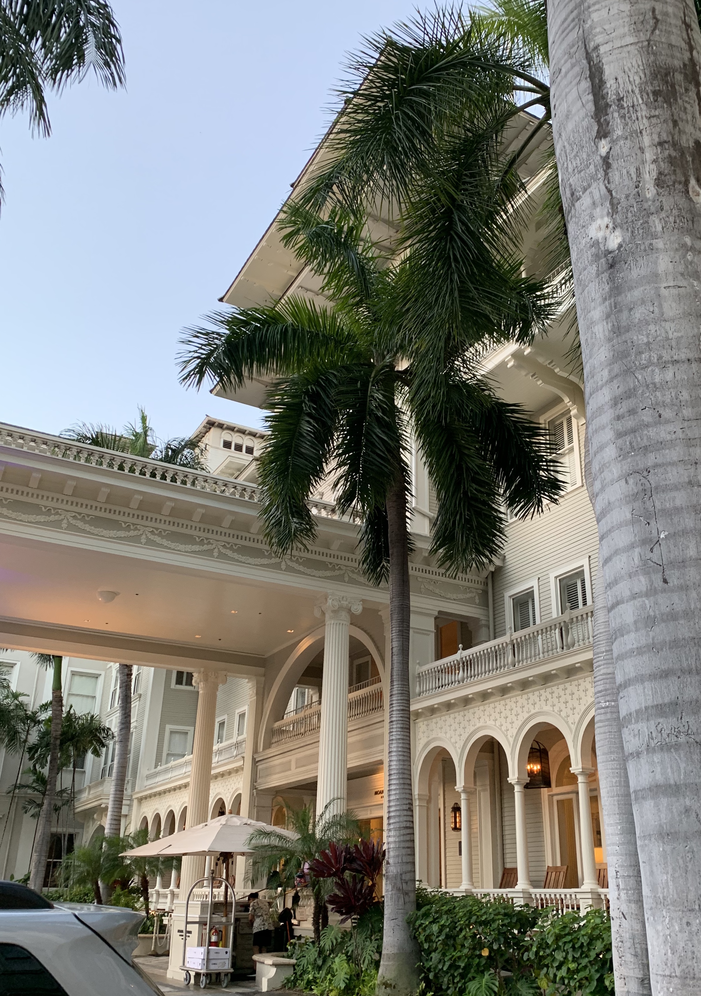 We spent two nights at the Moana Surfrider… the first hotel built in Waikiki. It was lovely and gracious, not inexpensive, but there you go. The saying goes that you get what you pay for and we did :-).