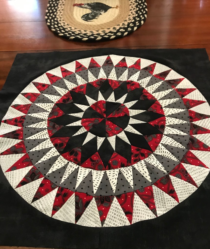 Here is another block from the virtual Bullseye class that I taught for the Golden Triangle Quilters in Beaumont. this is Jean Aguilar’s finished block. It graphic and stunning—well done, Jean!