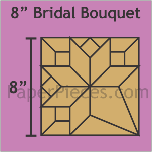 Our winner will receive a pack of EPP papers to make 12—8″by8″ Bridal Bouquet blocks. I have always loved this pattern. I want to make it but, but haven’t found time yet. However, you can find lots of beautiful examples of this type of quilt by googling “Nosegay Quilt” or “Bridal Bouquet Quilt”. The photo below is just one of these.
