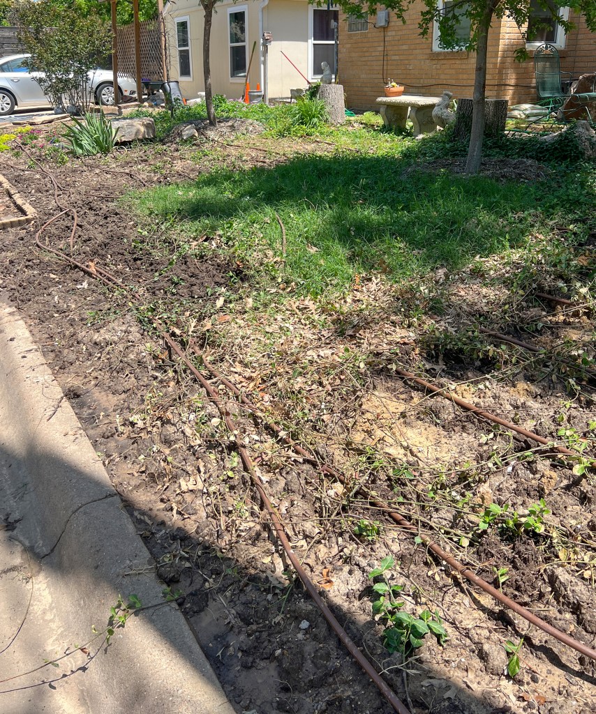 Now I’ll go back to the digging up of the Bermuda and nut grass in Chris and Lorna’s side yard. There’s about a 6′ x 6′ section left and I hope I can finish in 2-3 weeks. I don’t have much to do in my own yard and I am in the mood for outdoor work—and it’s good to be busy :-).