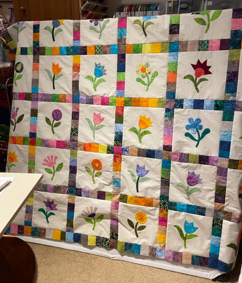 Jill Isakson sent these photos and the story about this lovely ribbon-winning quilt made by her, Linda Neal, and quilted by Richard Larson The oak leaf border is from my pattern, The Anniversary Quilt. which is in our ebook, Flowering Favorites.