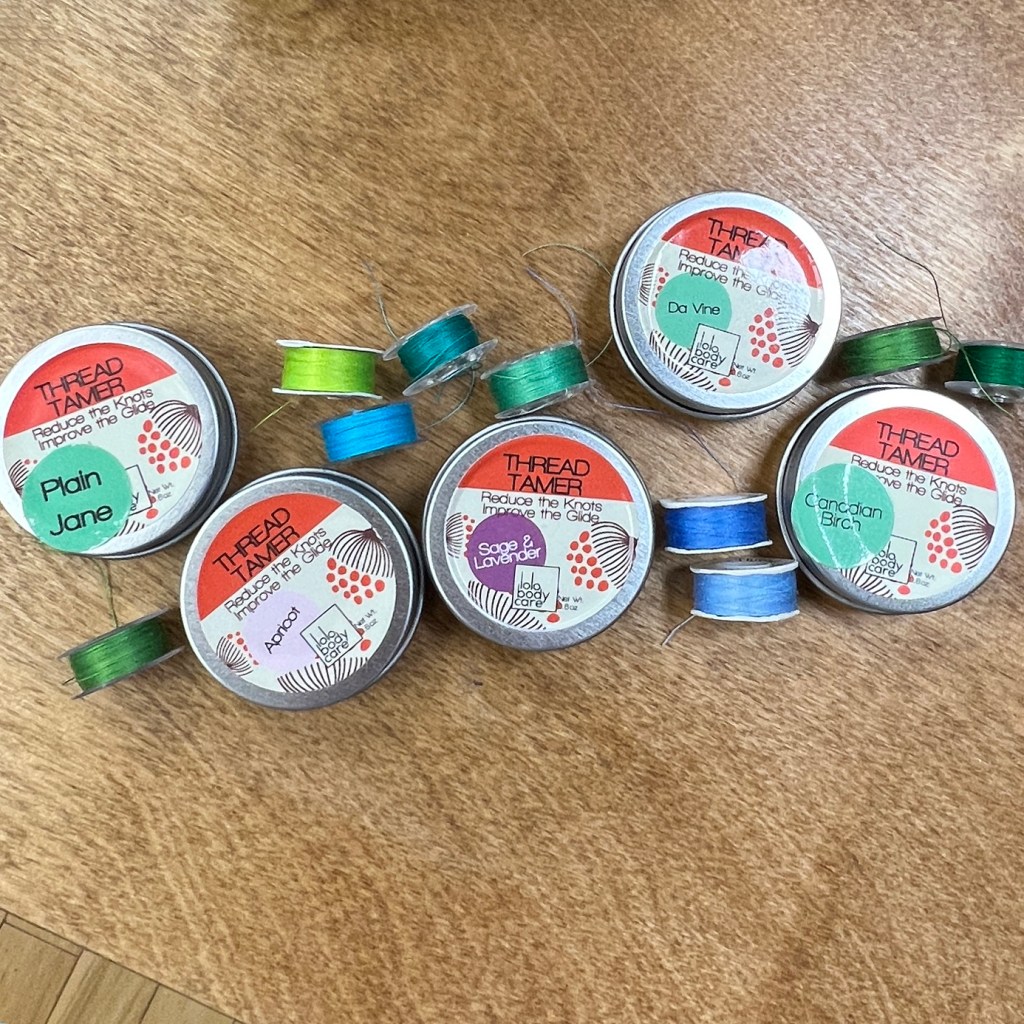 LoLo’s Thread Tamer was developed at my request and they outdid themselves! Thread Tamer is made with high quality 100% plant-based ingredients. Nothing synthetic. It is light and feels great on the thread.