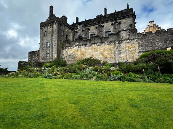 The travel from Islay to Stirling—by car and ferry and then back to the car—took a day but now we are in Stirling where there is a dandy castle! It’s impossible to get a photo from the outside that shows all of the buildings enclosed behind the outer walls.