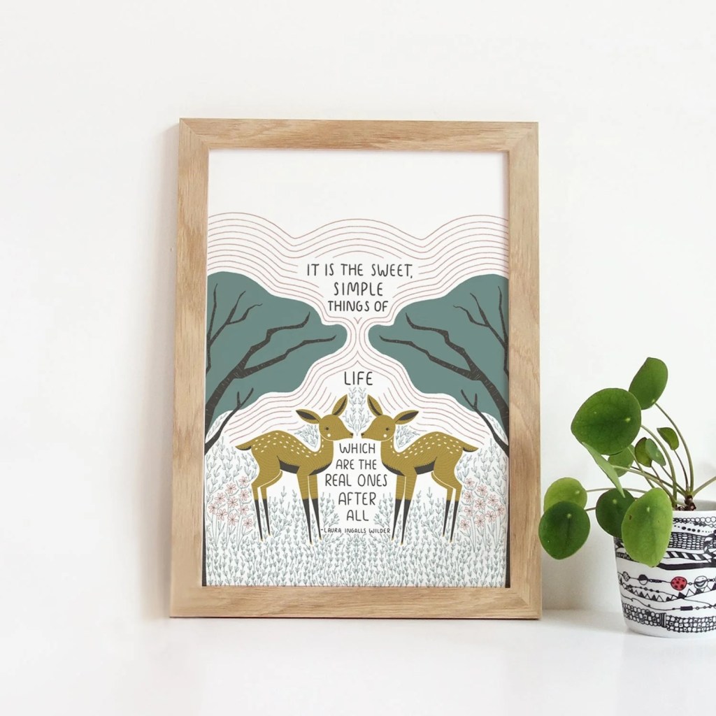 You’ll find quality tea towels, aprons, art prints, pouches, stickers, and even a small and pretty blank notebook to uplift and encourage.