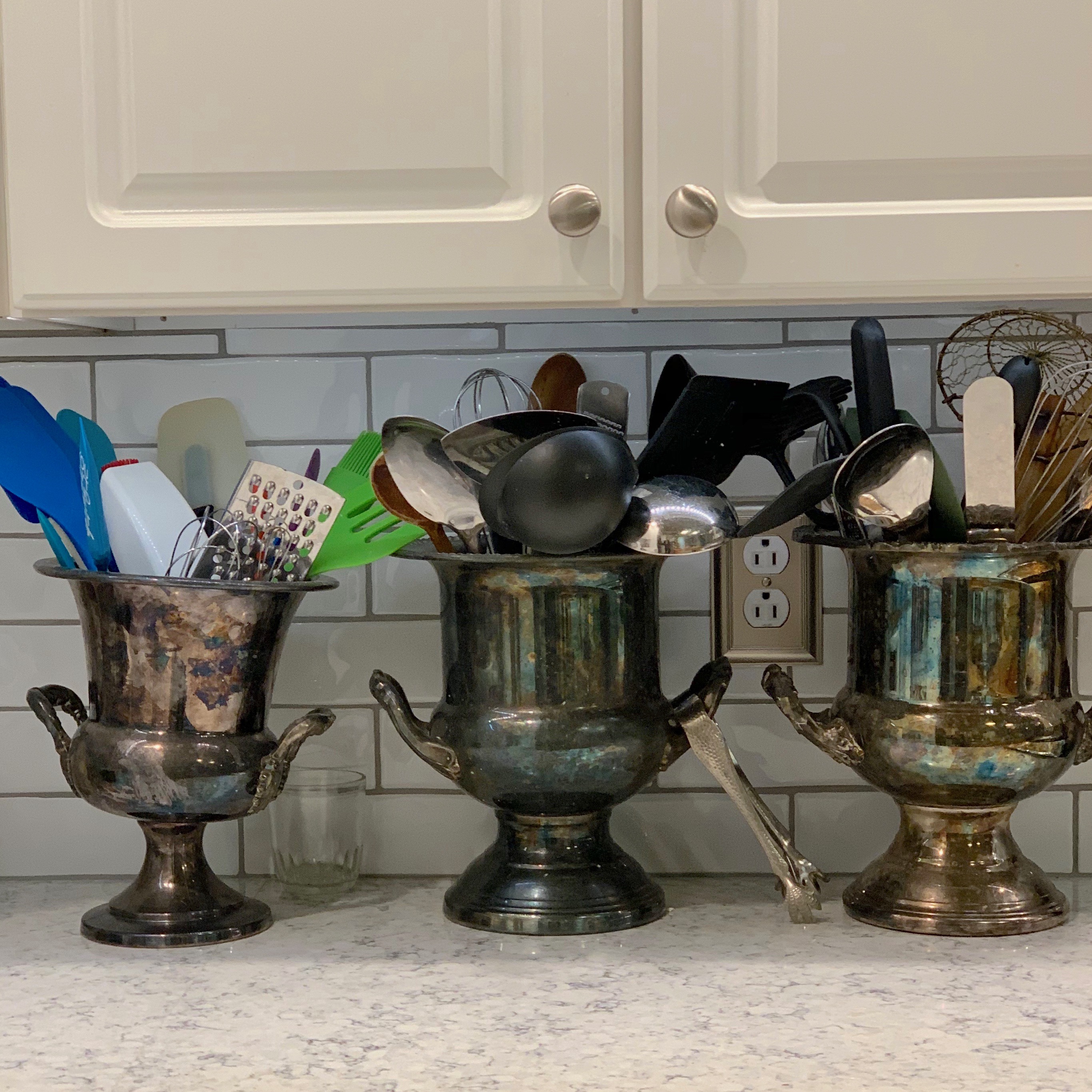 But wait! There’s more! Why oh why did I make the silver plate ice bucket we got when we got married go away?!