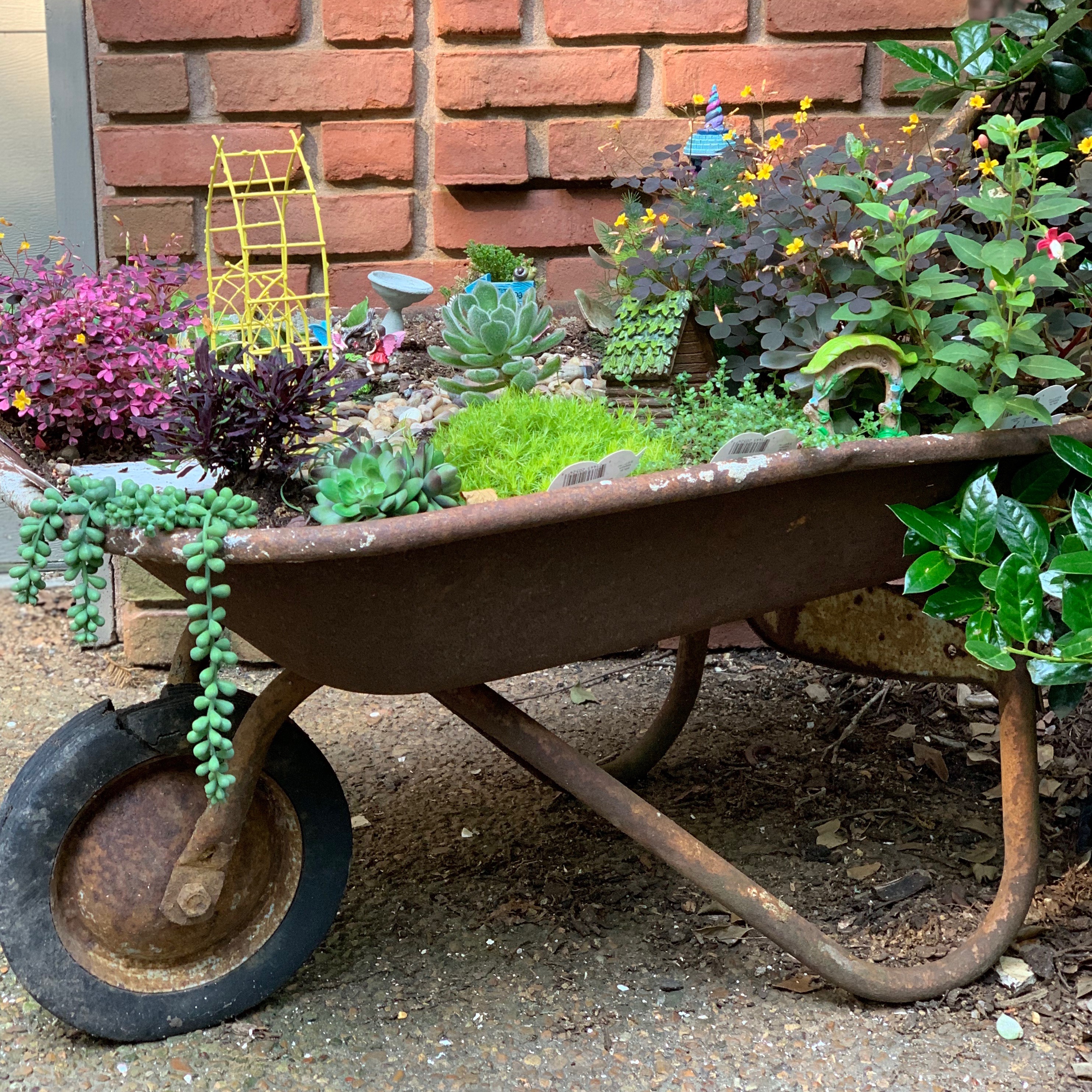 Lastly, the fairy garden in an old wheelbarrow. I have one of those and this could happen in my yard, soon-ish.
