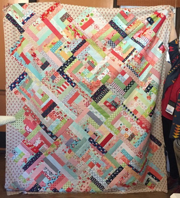 Yolanda completed so many things that I sort of lost count. I especially liked this top that is the result of a log cabin block exchange.
