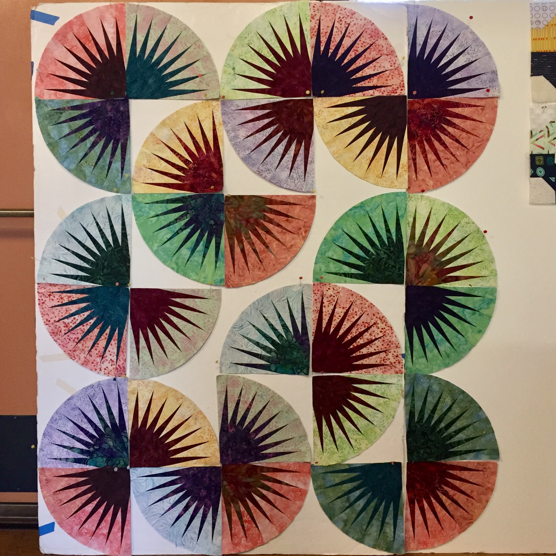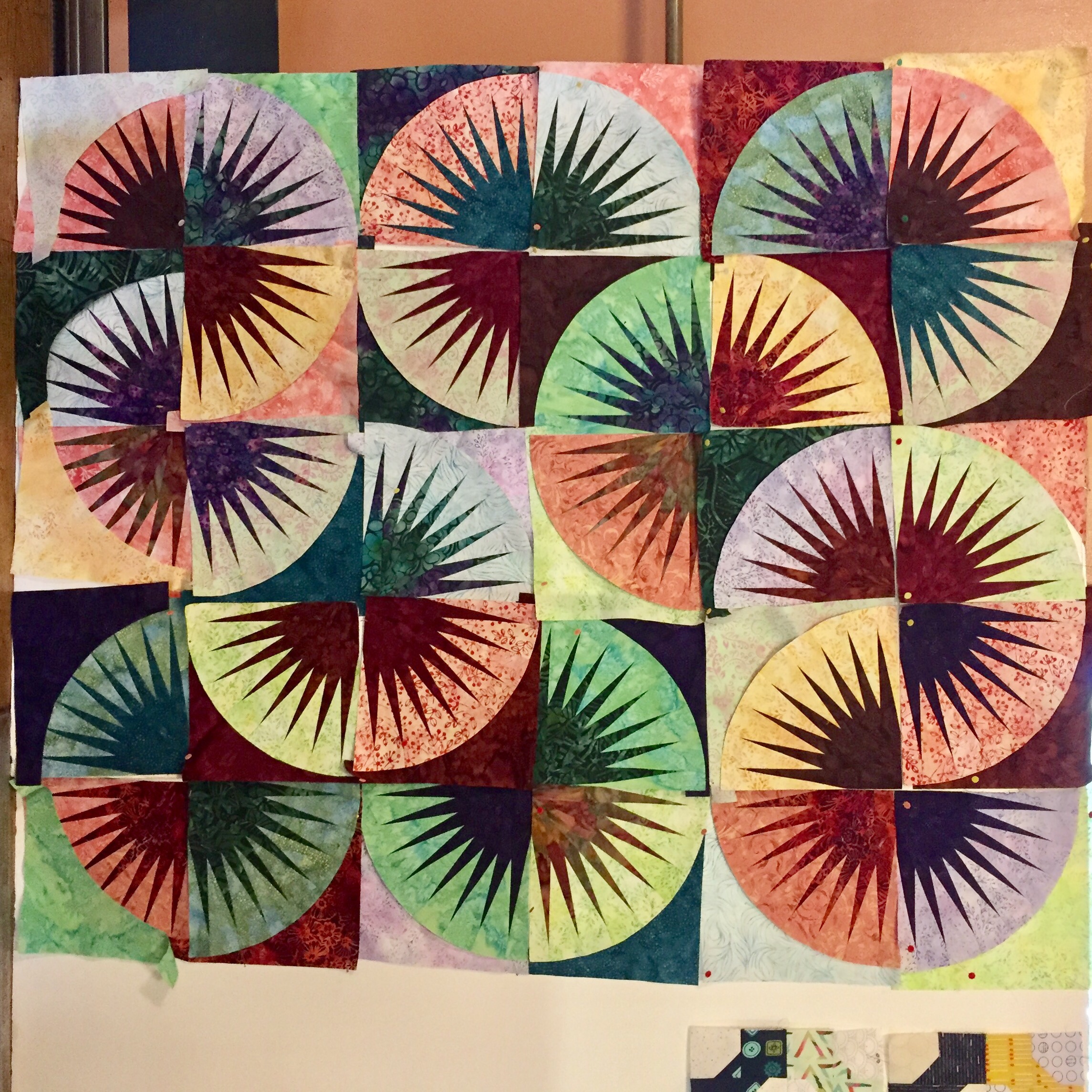Marie sewed on a foundation paper piecing project and left with her arcs nearly finished.