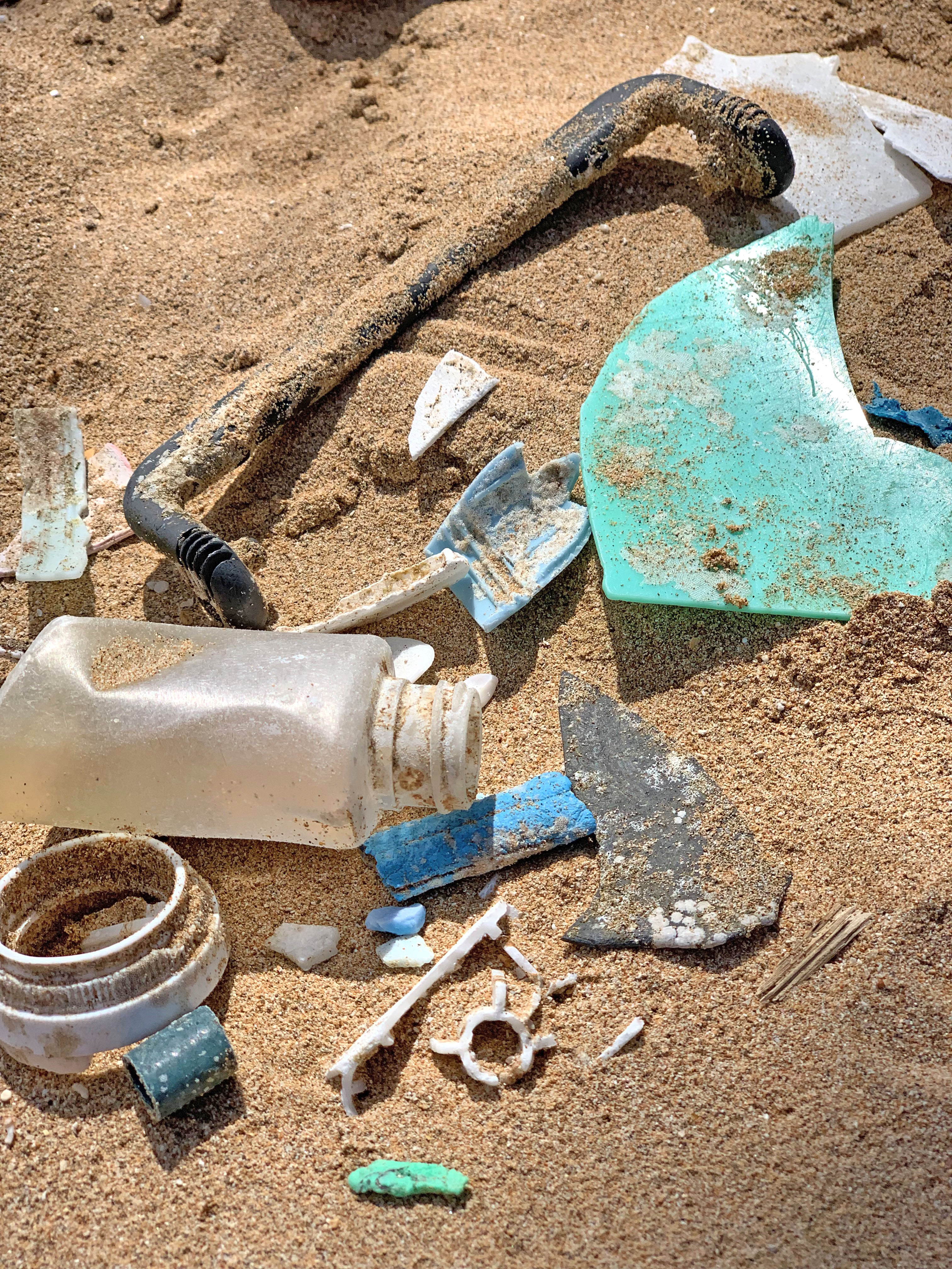 We’ve all heard about plastic in the ocean but finding it on beaches where I’ve not seen it before got my attention in a big way. The amount of plastic on some beaches was shocking. I gathered those big pieces inside a 3′ square space on the beach near Lydgate Park.