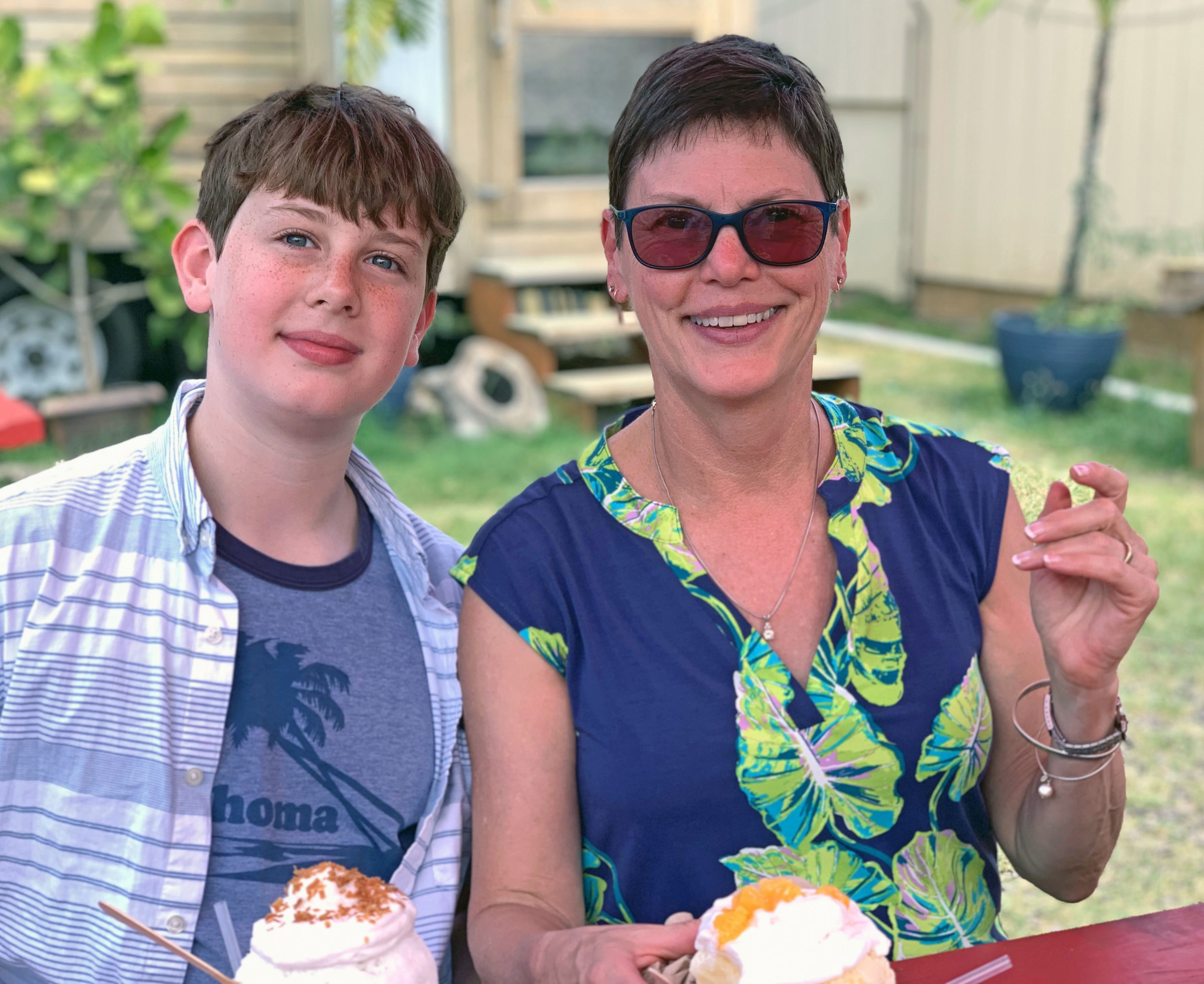 Back to happier things… we all miss Wailua Shave Ice! FYI: we really aren’t that red in real life. The umbrella and tables are red and we are basking in their glow :-).